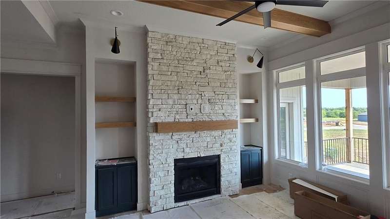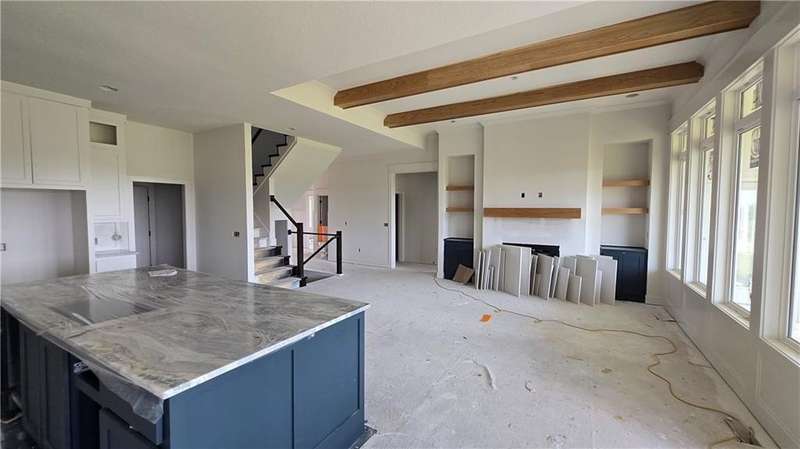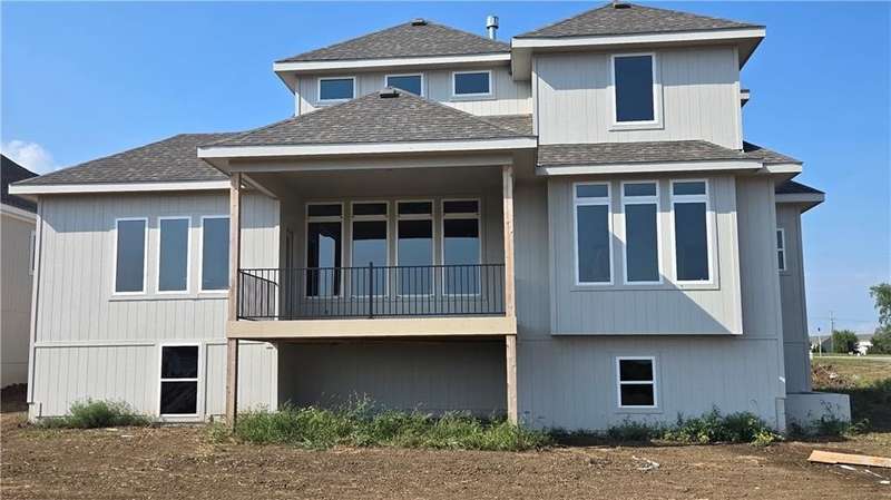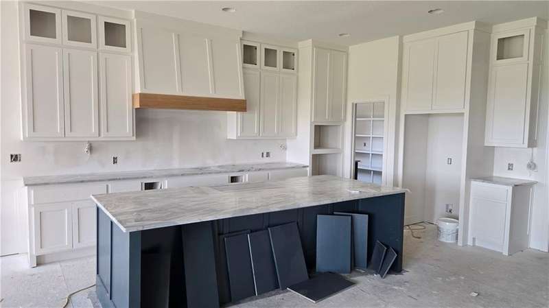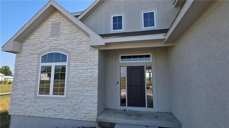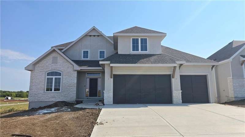 Located on Lot 81 prepare to be wowed by The Santa Barbara plan is one of Hilmann Home Building's newest 1 1/5 Story plans offering 5 bedrooms and 5 baths. The open main floor living features a great room with hardwood and vaulted ceiling, floor-to-ceiling fireplace, and a view to the outdoor covered living area, great for entertaining. The kitchen features beautifully designed cabinetry with a large island and granite countertops. The huge walk-in pantry / optional prep kitchen provides ample storage. The beautiful primary bath has everything you need including a large vanity space, walk-in shower, free standing soaker tub and TWO large walk-in closets. The primary bedroom has a convenient door leading to the covered porch. The main floor laundry boasts a utility sink with cabinetry and access from the main living area and the master bedroom closet. The 5th bedroom on the main floor can also serve as an office or study with access to a full bath. Each bedroom throughout includes its own bath and walk-in closet. 2nd floor features a spacious loft with fireplace. Additional laundry hook-ups on the second floor for convenience. Photos include a rendering of the model and interior pictures from another model, which may vary. Any additional photos show the current state of the actual home on lot 81.Taxes are estimated. Don't miss this opportunity to own a beautifully crafted, loaded with upgrades, home in a fabulous neighborhood- minutes from our K-12 schools, highways, shops and restaurants. Models Open Daily, 11 am – 5pm, and Sunday, 12-5pm. Visit the sales office at 12407 W 183rd Terrace, Overland Park. ***ESTIMATED COMPLETION is Mid-October 2025.