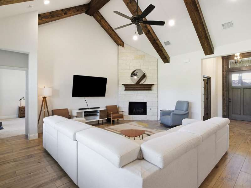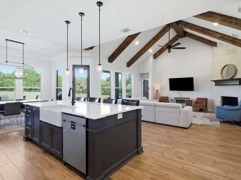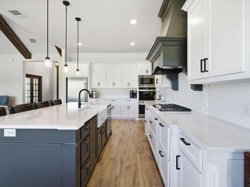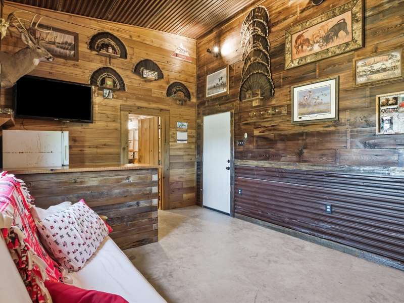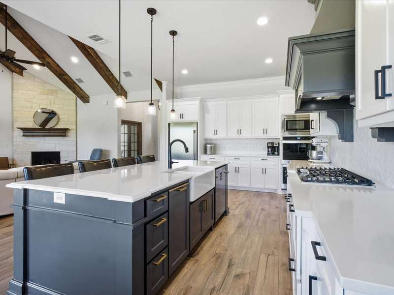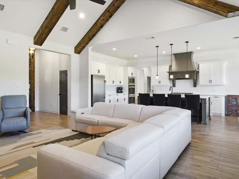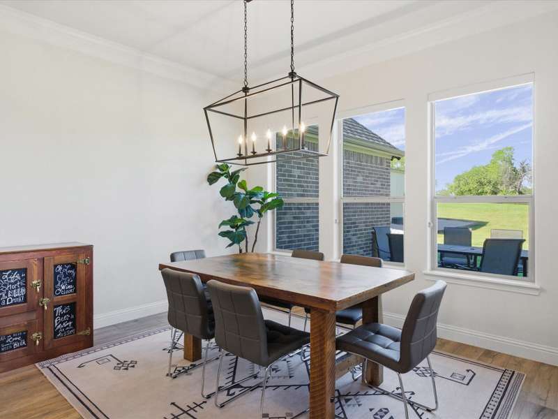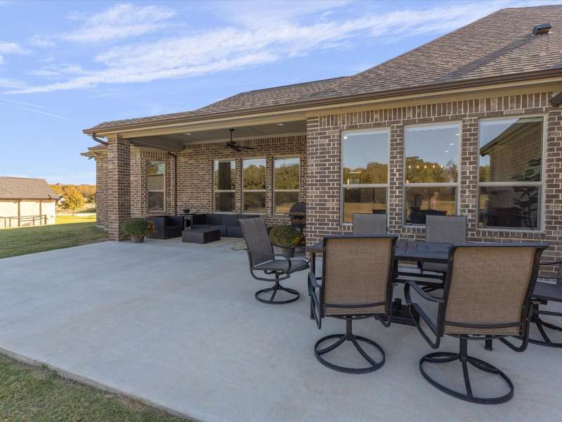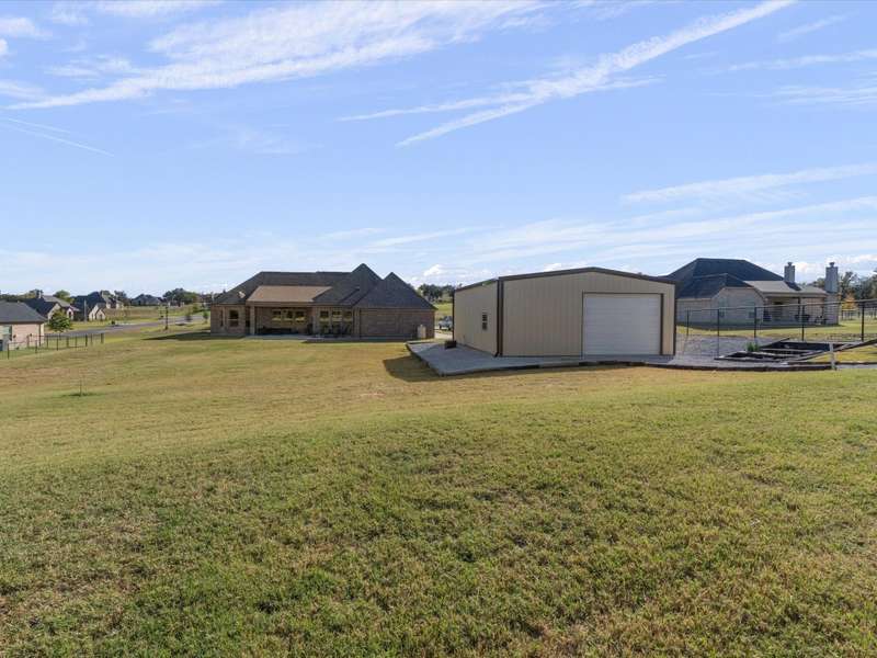Parker County PERFECTION! Sophisticated, yet livable style in this exceptionally maintained newer home with the BEST lot and ideal spot in the addition, with it's backyard overlooking gorgeous woods that are wonderfully private! Impressive interior with 8 ft doors throughout, stunning open design kitchen with on-trend Quartz counters and edgy backsplash that opens to a big family room with gorgeous, stained truss beams! Great woodwork and ornate trim, as well as upgraded statement lighting throughout, plus on trend tile in every bath and super spacious closets! Extended back patio to enjoy it's incredible yard that's fenced with pipe and no climb fencing down the sides! Arguably the most impressive feature is the WORKSHOP! Oversized roll-up doors to pull thru with 200 AMP service, plus fully plumbed and offers the coolest little guest qrtrs with full bath and cedar closets for hunting gear or tack storage! GREAT proximity to the Silver Creek Elementary!