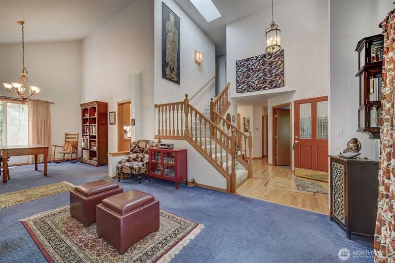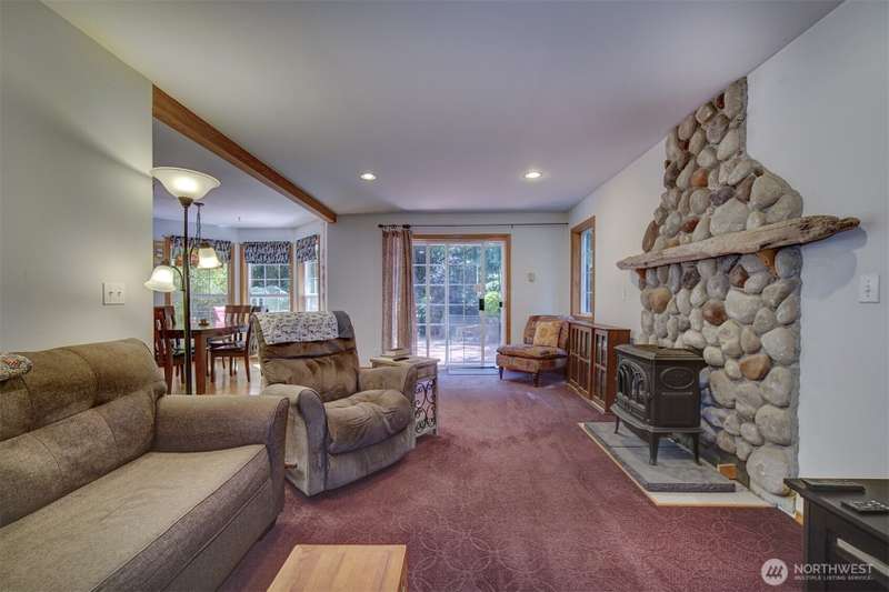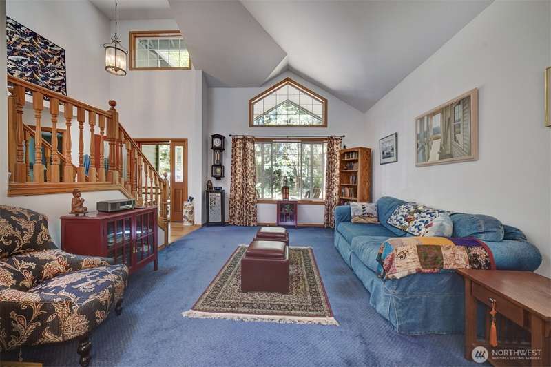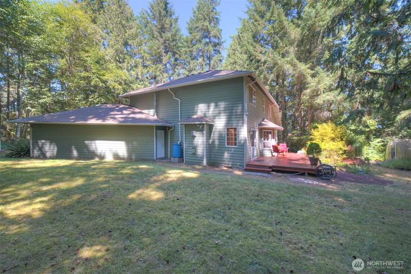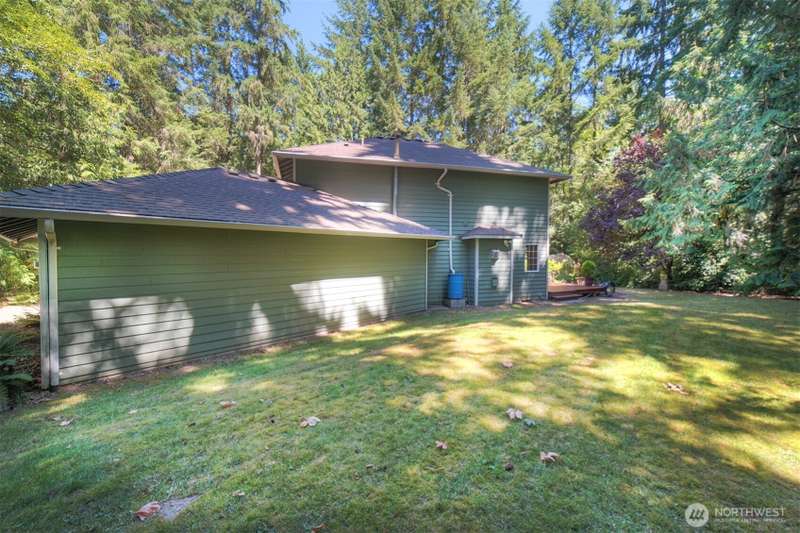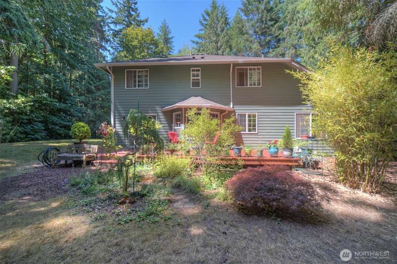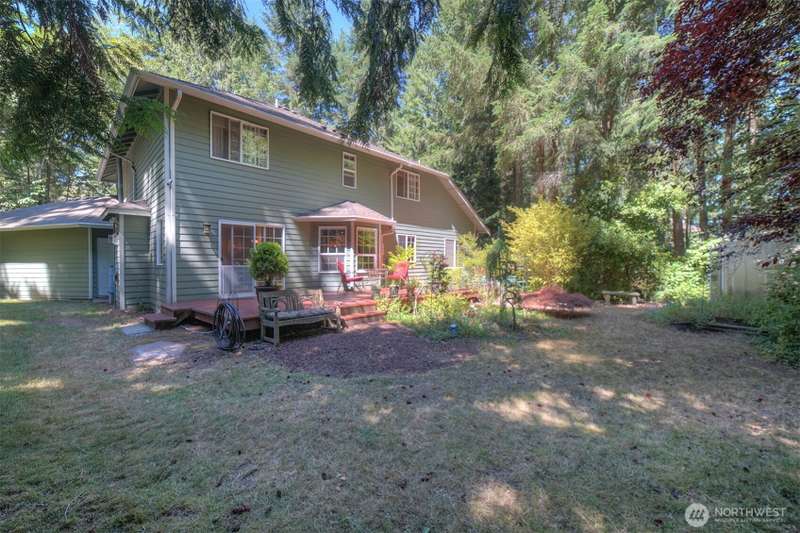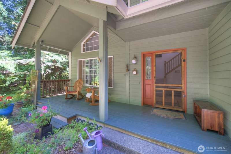 Unbeatable Location & Privacy! Tucked away on a serene 0.75-acre lot less than 3 miles from downtown Poulsbo, this 2,456 sq ft home offers the perfect blend of peaceful country living and close-in convenience. Enjoy complete privacy—you won't see your neighbors—and a true Northwest lifestyle. This 3-bedroom, 2.5-bathroom home features a welcoming covered front porch and a spacious 12' x 30' back deck ideal for relaxing or taking in the surrounding nature. Inside, you'll find vaulted ceilings, skylights, a cozy gas fireplace, forced air heating, and an oversized garage. The luxurious primary bath includes heated floors, and the laundry is conveniently located upstairs.