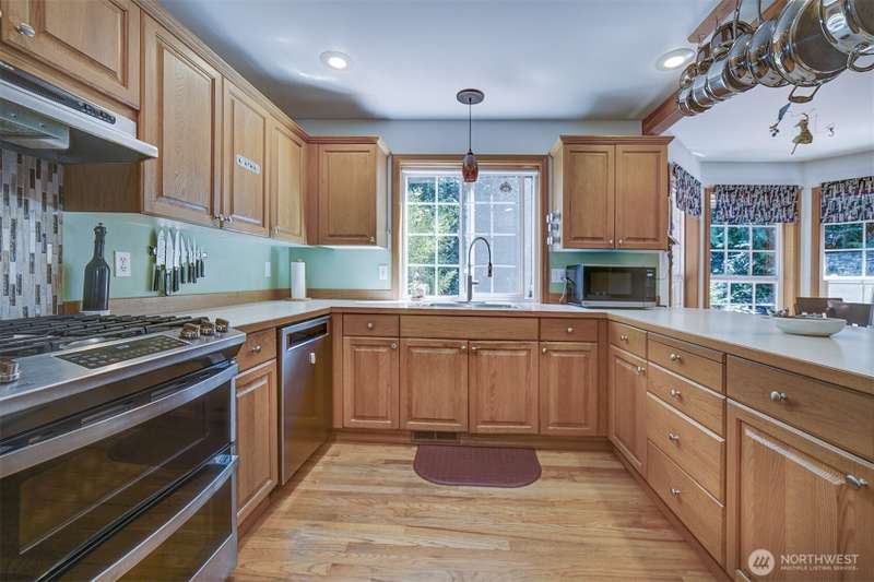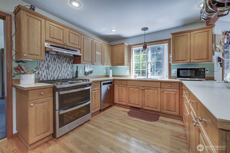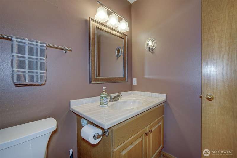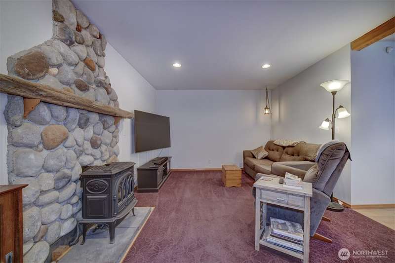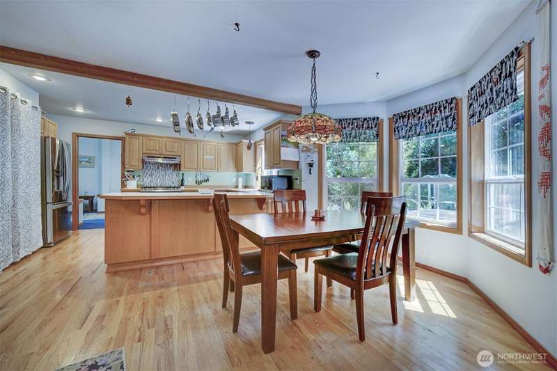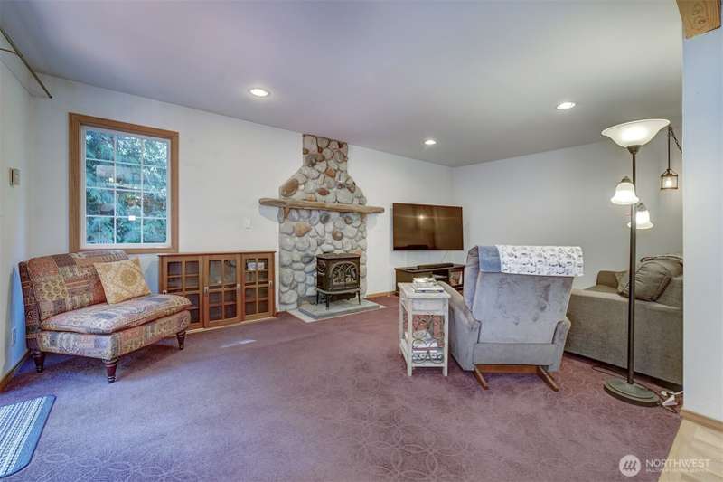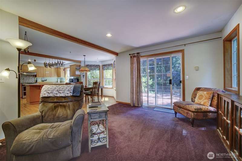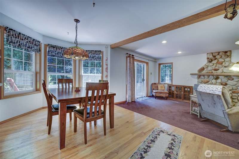 Unbeatable Location & Privacy! Tucked away on a serene 0.75-acre lot less than 3 miles from downtown Poulsbo, this 2,456 sq ft home offers the perfect blend of peaceful country living and close-in convenience. Enjoy complete privacy—you won't see your neighbors—and a true Northwest lifestyle. This 3-bedroom, 2.5-bathroom home features a welcoming covered front porch and a spacious 12' x 30' back deck ideal for relaxing or taking in the surrounding nature. Inside, you'll find vaulted ceilings, skylights, a cozy gas fireplace, forced air heating, and an oversized garage. The luxurious primary bath includes heated floors, and the laundry is conveniently located upstairs.