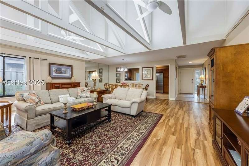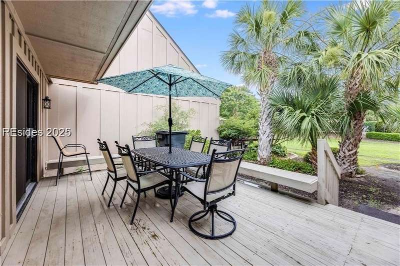 Discover what it's like to live in PARADISE. Primary, 2nd home, or rental. This spacious villa has one of the most sought-after locations, private deck, private backyard with view of lagoon, steps to pool, 10-minute walk/bike to beach, restaurants, golf, tennis, pickleball, and 11-mile lagoon and much more. Updated flooring, baths, kitchen, stainless steel appliances and much more. Invisible track lighting in great room and lovely fans for additional comfort. Open to large deck with lots of seating and private back yard for entertaining or for just relaxing. Steps to pool.