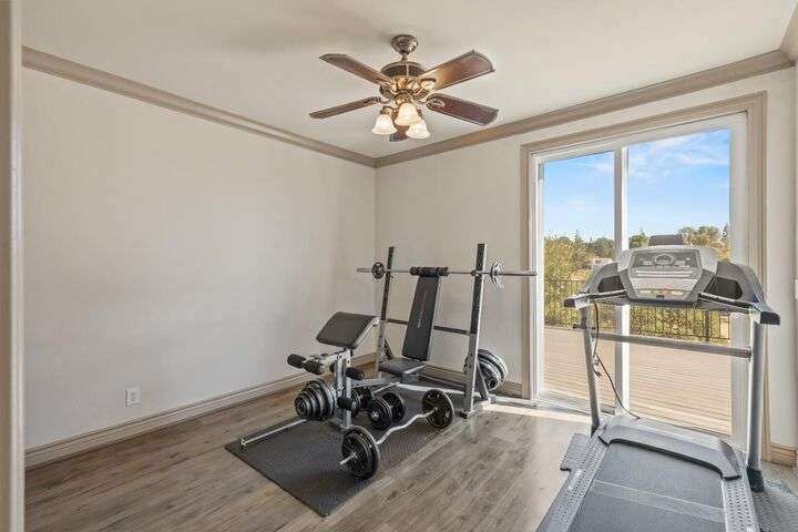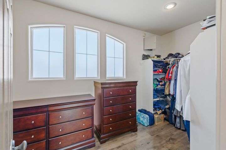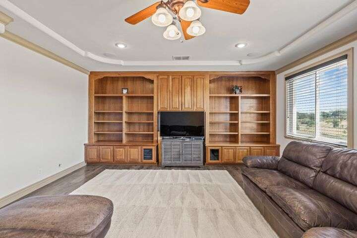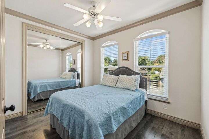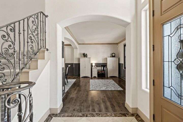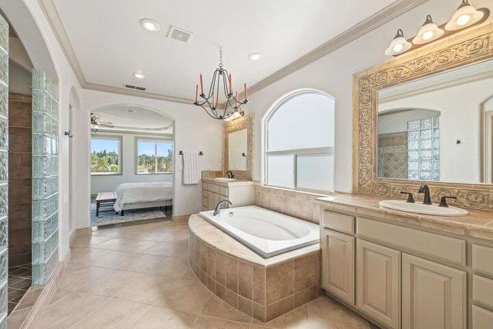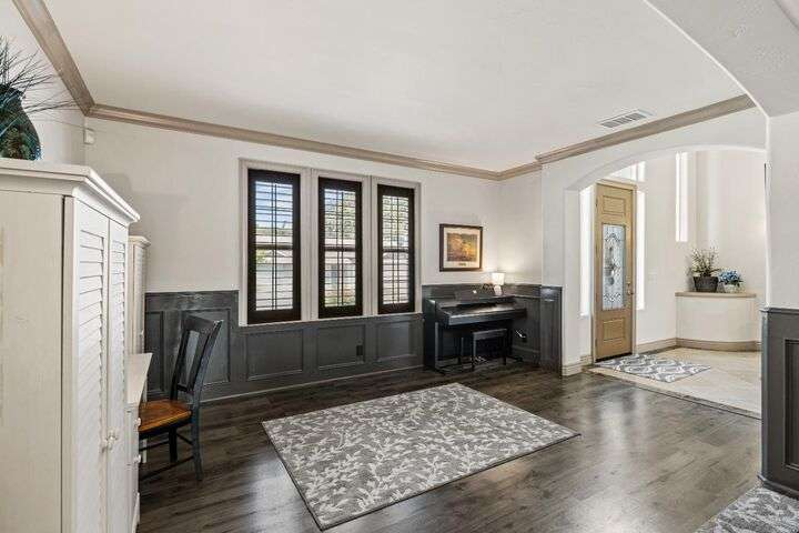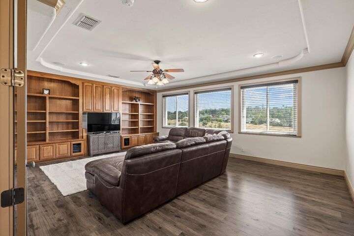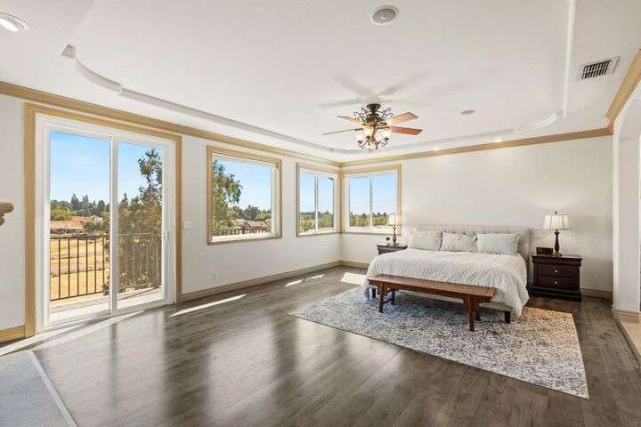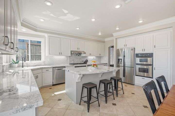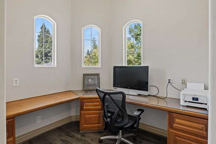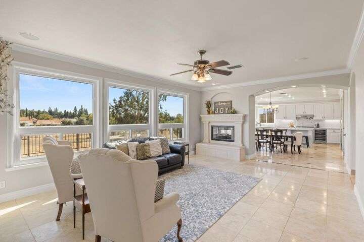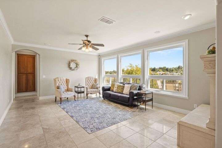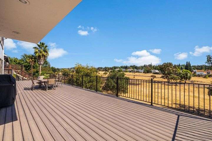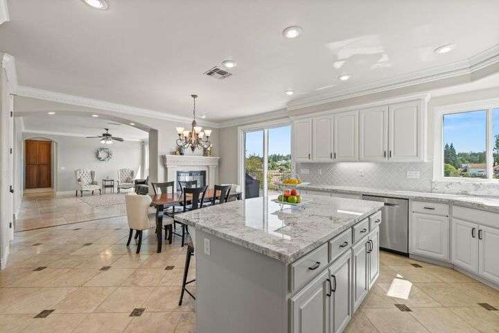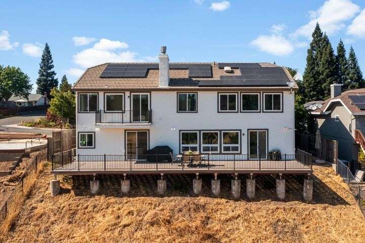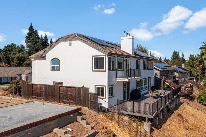Scenic trails, just outside your door! This beautiful five-bedroom, three-bath home offers over 3,900 square feet of living space and an ideal location next to the walking trails of the Sunset Whitney Recreation Area. Originally one of the developer's model homes, it blends timeless design with modern updates. The updated kitchen opens to the family room with an island and breakfast area, while the formal dining and living rooms provide space for entertaining. A downstairs bedroom and dual laundry hookups add convenience. Upstairs, the expansive master suite features a private balcony, fireplace, and sitting area overlooking the greenbelt, along with a theatre/game room, office nook, and beautifully updated baths. The home includes a 9.6kW OWNED SOLAR system. A large deck offers peaceful greenbelt views, creating the perfect retreat. Close to shopping, dining, and schools yet set in a tranquil trail-side setting, this is a rare opportunity that won't last long.