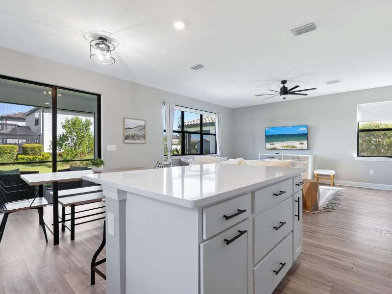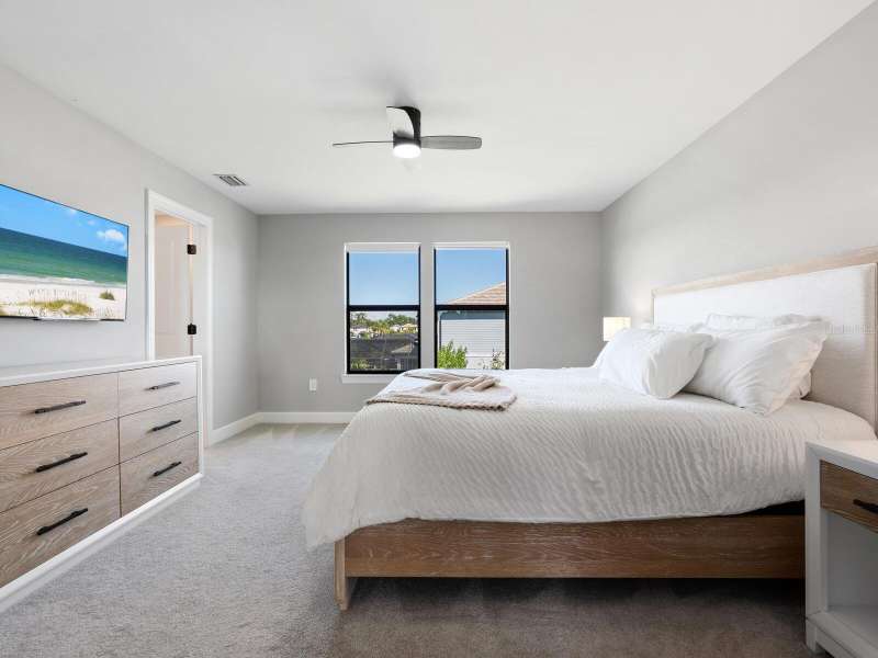 Turnkey Home in Sapphire Point at Lakewood Ranch. Welcome to 6228 Baywood Court, an exceptional opportunity to own a fully turnkey, move-in ready residence in the exclusive gated community of Sapphire Point at Lakewood Ranch. Built in 2023, this beautifully maintained Morris floor plan offers 4 bedrooms, 3 bathrooms, and 2,207 square feet of thoughtfully designed living space—blending comfort, style, and functionality. Set on a quiet street with partial water views, the home boasts striking curb appeal with a paver driveway and professionally landscaped exterior. Inside, you’ll find an open-concept layout filled with natural light, highlighted by luxury vinyl plank flooring, custom window shades, and a spacious gathering room with 9-foot ceilings and sliding glass doors that invite indoor-outdoor living. The gourmet kitchen is a chef’s dream, featuring soft-close cabinetry, a subway tile backsplash, quartz countertops, a large island, and Whirlpool stainless steel appliances. A private first-floor guest suite with full bath is ideal for visitors or multigenerational living. Upstairs, the elegant primary suite offers a spa-inspired retreat with a frameless glass walk-in shower, and a generous walk-in closet. Two additional guest bedrooms—each with queen beds—share a well-appointed full bath with a tub/shower combination. A second-floor laundry room, two-car garage, and screened paver lanai with grill and lounge area complete the home’s impressive offerings. As a resident of Sapphire Point, enjoy resort-style amenities including a clubhouse with catering kitchen, state-of-the-art fitness center, beach-entry pool, sports court, dog park, playground, fire pit, and covered pavilion—creating a vibrant and welcoming community for all ages. Situated near the Premier Sports Campus and just minutes from top-rated schools, upscale shopping, dining, and the best of Lakewood Ranch, this home offers the perfect blend of luxury, convenience, and lifestyle. Don’t miss your chance to own this turnkey furnished home in one of Southwest Florida’s most sought-after master-planned communities. Schedule your private showing today!
