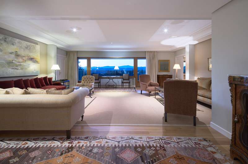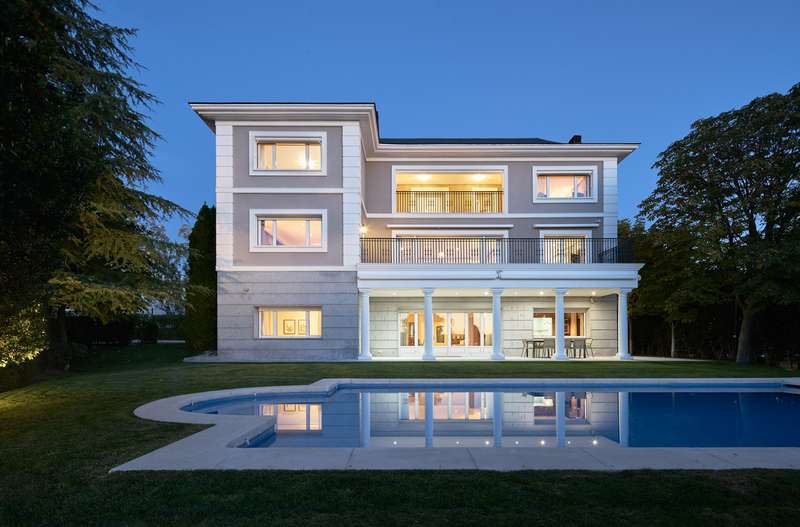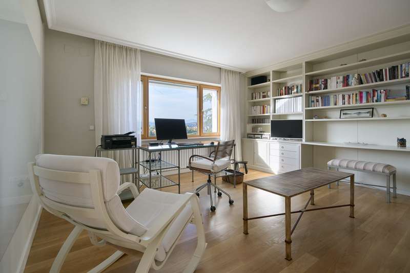 Three cypress trees stand gracefully near the entrance of this stunning villa in Las Rozas de Madrid, setting the tone for the beauty and charm within. Tradition suggests that one cypress invites a visit, two invite a meal, and three invite an overnight stay. This luxury villa perfectly embodies that tradition, designed as a generational gathering place. With seven bedrooms and three storeys, the villa sits on over 2,000 square metres of magnificent grounds within an upscale, secure gated community. Just twenty minutes from central Madrid, this area is popular among leading citizens for its international schools, excellent shops and restaurants, and breathtaking landscape. The home offers stunning views of the surrounding mountains, visible through large picture windows and wide bifold doors. Though it may not appear so, this luxury home was built 24 years ago by its current owners. Over the years, it has been a beloved home for their children and their friends, and more recently, for their grandchildren. The villa boasts an array of lovely living spaces on both the ground and first floors, each with a full kitchen, allowing families and guests the luxury of gathering or enjoying privacy as desired. The large, beautiful pool is a favorite feature, surrounded by rolling lawns, pristine gardens, and shady trees, making it a summer haven for all ages. Behind the scenes, the villa is equipped to ensure an exceptional quality of life, with staff accommodations, secure garaging for six cars, and top-quality fixtures, fittings, services, and technology. This family villa has been a cherished space for its family, creating countless happy memories, and it promises to continue being a stage for many more to come.