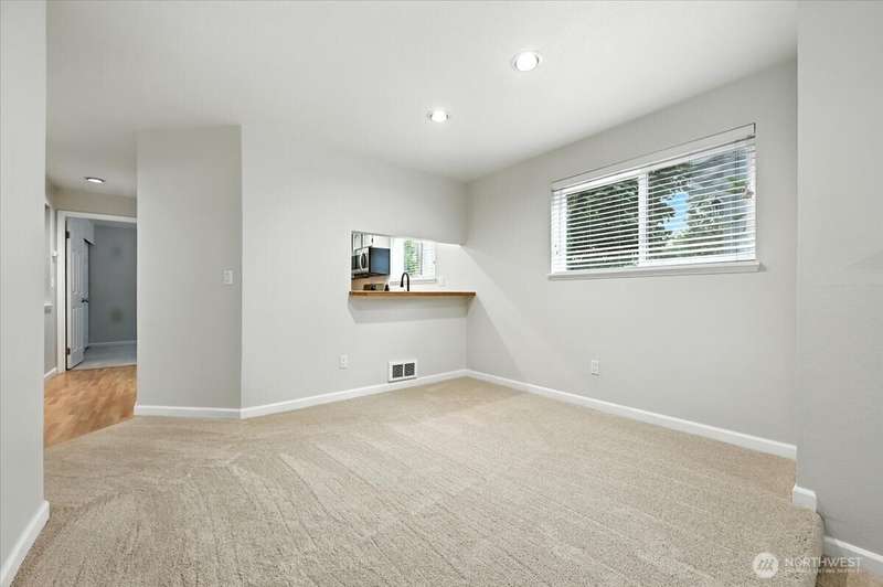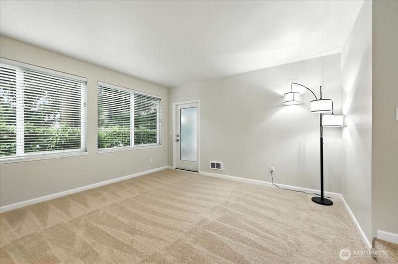 Freshly updated Shoreline gem! This ground-floor 2 bed, 1 bath condo offers spacious open living. Enjoy brand-new carpet and fresh paint throughout for a crisp, move-in-ready feel. The kitchen features new stainless steel appliances, ample storage and bar seating. Open airy dining and family room with many large windows. The oversized primary bedroom has a walk-in closet, and the second bedroom/office is generously sized. The living room opens to a private patio, plus you’ll enjoy a full-sized washer/dryer and a one-car garage.