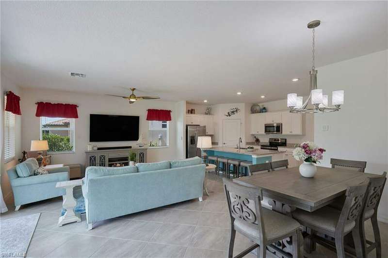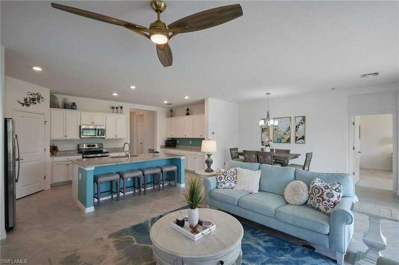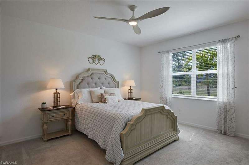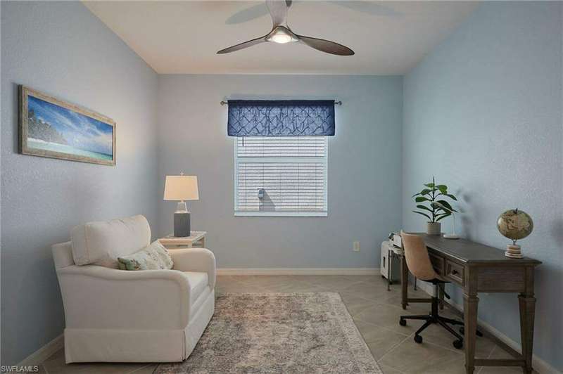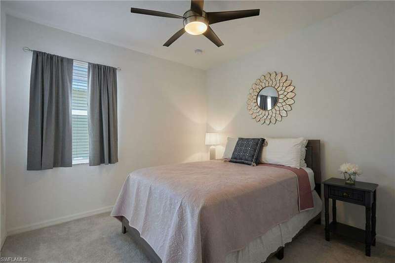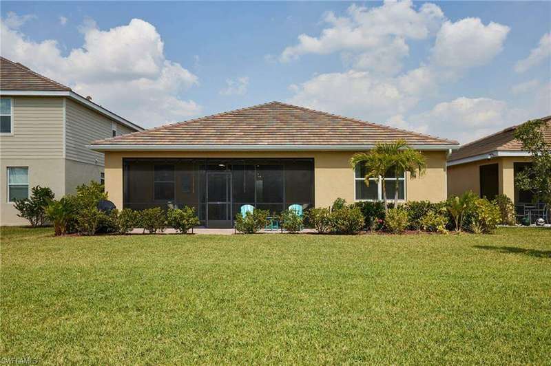 What a fabulous home that's being offered here in Hampton Lakes at River Hall! This Lennar Marsala floorplan is priced to sell and more than ready to go! This beautiful single-story home features a split and open floor plan with 3 bedrooms plus a den, 3 bathrooms, 2,202sq ft, extended lanai, and tons of upgrades that Lennar no longer offers. Furniture is also negotiable!! Enjoy designer fixtures, newer installed gutters, great island, window coverings, southern rear exposure, and cute accent paint throughout. Stepping into the home you'll be greeted in the foyer which leads to separate guest bedrooms and a den. The open layout perfectly connects the living room and kitchen creating the perfect space for every day living and entertaining. The spacious primary suite is located at the rear end of the home and features views of the backyard and his and hers closets. The primary bathroom is a dream and the perfect size. It features a great frameless shower, soaking tub, dual sinks and a window to get that natural light coming in. Step out to the extended lanai for those views of your beautiful and quiet backyard and enjoy stunning unobstructed sunset views. This home has been impeccably maintained, upgraded, and is the perfect property for anyone to call it home. No need to worry about waiting months for Lennar's new construction at the same price and with lesser upgrades when you have this great move in ready home!! Want a pool too? No problem! This perfect lot offers more than enough room for you to build your own unique pool. Enjoy all of the resort style amenities that Hampton Lakes has to offer including the clubhouse with a lagoon style pool, full second story gym, library/study room, basketball court, tennis/pickleball/bocce courts, restaurants, golf for a fee or OPTIONAL membership, and much more! This home and community are perfect for families and the highly rated River Hall Elementary School is just a walk/golf cart ride away! Don't miss out on this opportunity to own your dream home in Hampton Lakes at River Hall!