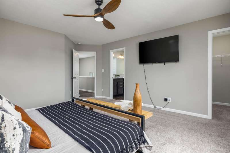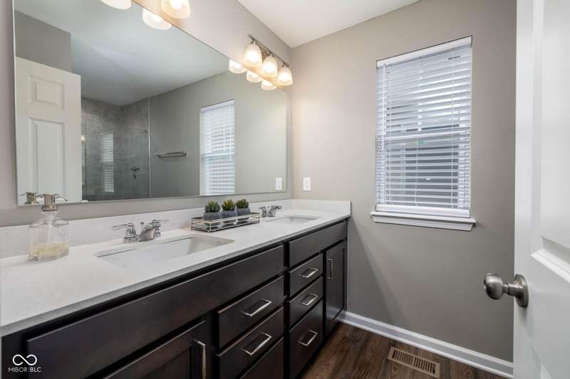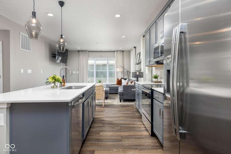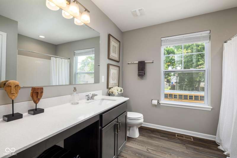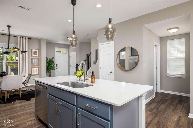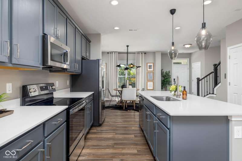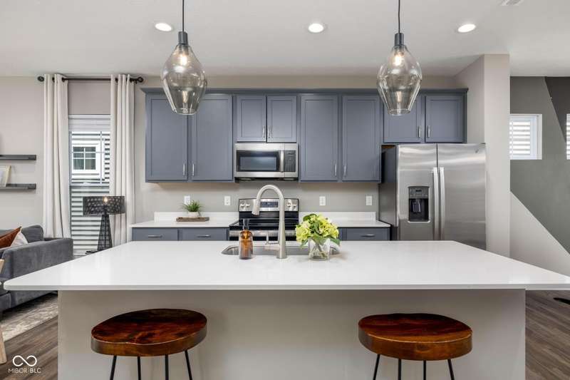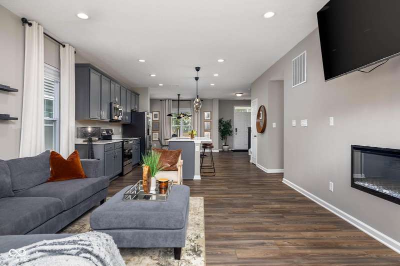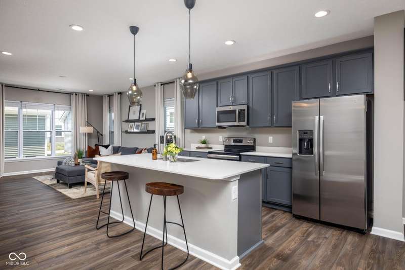 Welcome to this stunning newly constructed home, built in 2022, located in the vibrant community of Bolton Square at Central State in Indianapolis. This beautiful 3 bedroom, 2.5 bath home offers modern living with an open-concept main floor, perfect for both relaxing and entertaining. Step inside to luxury vinyl plank flooring that flows seamlessly throughout the main level. The spacious kitchen features stylish cabinetry, a large island with seating, stainless steel appliances, and gorgeous lighting that highlights the abundant natural light. The kitchen opens to the dining area and living room, creating an inviting space for gatherings. A convenient half bath and laundry area complete the main floor. Upstairs, the primary suite is a true retreat with a generous walk-in closet and an elegant ensuite bathroom featuring dual sinks and a tiled shower. Two additional bedrooms and a full hall bathroom provide comfortable accommodations for family or guests. Enjoy outdoor living on the back patio, offering plenty of room for entertaining or simply relaxing. A two-car garage provides secure parking and additional storage. Located close to shopping, dining, university, hospital, and entertainment options, this home combines style, comfort, and convenience. Don't miss the opportunity to make this must-see home yours!