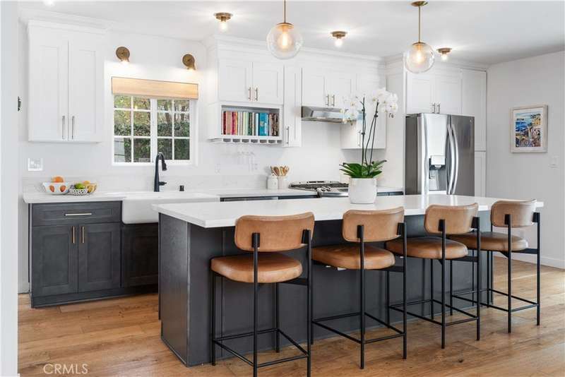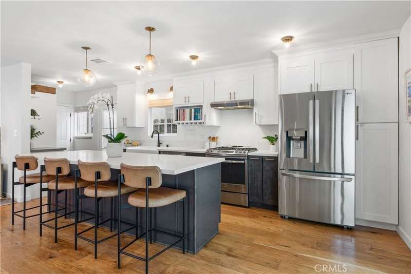 Experience coastal charm and modern comfort in this beautifully updated 3-bed, 2-bath single-family home, ideally situated on a quiet one-way street in Golden Hills. A sun-filled front deck offers the perfect spot to enjoy morning coffee or evening ocean breezes, while a classic Dutch door sets a warm, welcoming tone. Inside, light-filled spaces are enhanced by refinished hardwood floors, recessed lighting, and an open-concept living level. The remodeled kitchen is a true centerpiece, featuring a 9-foot island with bar seating, a wine fridge, Quartz countertops, stainless steel appliances, and a farmhouse Kohler sink—perfect for both entertaining and casual meals. Expansive Windor bi-fold doors open to a newly built TimberTech deck with gas and electrical hookups, overhead string lights, and plenty of room for dining or lounging, creating a seamless indoor-outdoor flow for everyday living or hosting. Upstairs, find all three bedrooms and a full bath, plus a sunlit landing ideal for a home office or reading nook. The office space features a newly installed Milgard window for added light and comfort. Each bedroom includes custom built-in closets for organized storage. The recently updated upstairs bath showcases fresh tile, vanity, and lighting, while the downstairs bath offers subway tile walls and patterned cement tile floors for a timeless touch. A detached, finished garage with drywall, recessed lighting, and insulation offers flexible use—whether as a home gym, creative studio, or hangout space—expanding your options for work and play. Thoughtful upgrades include fresh exterior paint, a tankless water heater, new HVAC system, abundant storage, and a conveniently located washer/dryer near the kitchen. Just over a mile from the beach and moments from award-winning Redondo Beach schools, shops, and dining, this home blends modern updates with the quintessential South Bay lifestyle. When you buy here, you're buying a lifestyle!