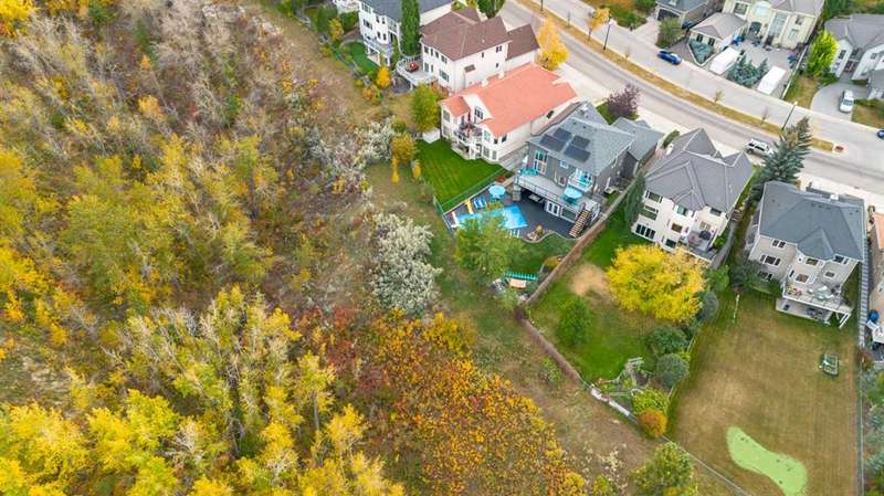 Nestled among the rolling hills of Patterson, this stunning 5-bedroom, 3.5 bath executive home combines elegant design, smart technology, and resort-style amenities—perfect for the modern family. As you enter the grand foyer, you’re greeted by a tranquil spa-inspired water feature, setting the tone for the sophistication that follows. The main living area boasts soaring 17’ ceilings, a cozy gas fireplace, and vinyl plank flooring throughout, creating an airy and inviting atmosphere. The gourmet kitchen is a chef’s dream, featuring granite countertops, a large entertaining island, built-in fridge, and gas range. Step outside to the massive deck, fully updated in 2024, where you can take in sweeping views of Calgary’s skyline. Adding to the functionality of the main floor are a formal dining room, front sitting room/office, and laundry/ mud room area - that leads into the attached oversized double garage. Upstairs, the primary suite offers true luxury—complete with a private balcony, a gorgeous ensuite featuring a Jacuzzi tub, heated floors, double vanity, stand-up shower as well as a generous walk-in closet. Two additional bedrooms, a loft area ideal for a home office, and another full bathroom with heated floors complete the upper floor. The fully finished walkout basement is an entertainer’s dream, featuring a second gas fireplace, two more bedrooms, a full bathroom, and even a kitchen area for hosting epic movie nights or game days with friends and family. The newly built flex/workout room includes rubber flooring and is pre-wired for a hot tub. Step outside to your own backyard paradise—a professionally landscaped oasis designed by an architect, featuring a 16’x32’ heated in-ground pool surrounded by stamped concrete decking, custom lighting controlled by app, and a retractable Elephant Cover for safety and convenience. Enjoy your favorite music indoors and out with the fully integrated sound system across all levels, and relax in the covered outdoor living area with a dual wood/gas fireplace and built-in Weber BBQ. There is also a gas hook up for a fire table. This home is move-in ready with new exterior finishes, solar panels reducing energy costs by approx. $300/month, programmable Gemstone lighting, in-ground irrigation, central A/C, central vac, two furnaces, two hot water tanks, water softener, keyless smart entry on all doors, and a new garage door (2024). Every inch of this home has been thoughtfully curated to deliver comfort, elegance, and entertainment—all with breathtaking views of the Bow River and Calgary’s west side. Move-in ready and built for making memories.