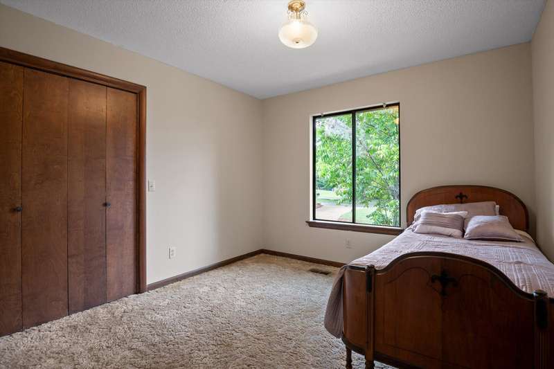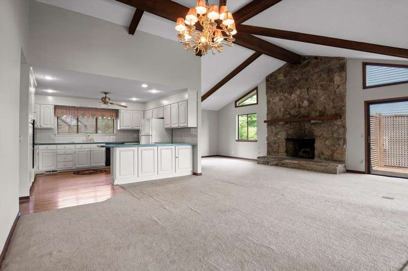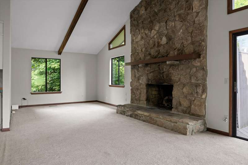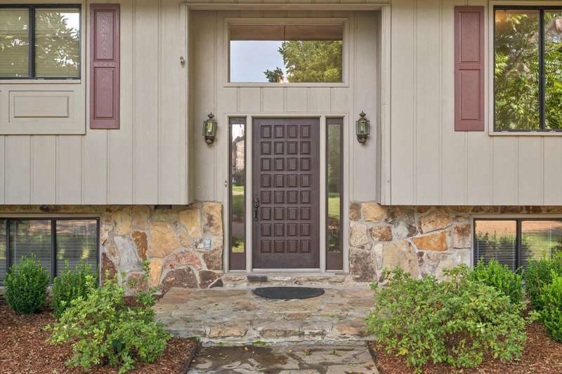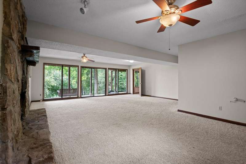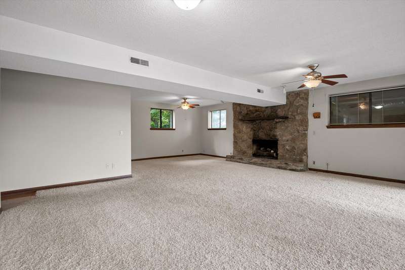 On the lower level, a second great room, also centered around a stone fireplace, opens to the backyard and offers additional living space along with a private bedroom and full bath - perfect for multi-generational living or hosting weekend visitors. The attached garage provides convenience and extra storage.