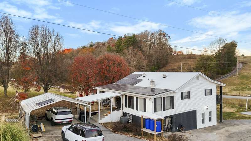 Welcome to a home designed for comfort, efficiency, and practical living.The main level features three comfortable bedrooms with newly added carpet extending into the cozy living room, and a versatile den, with convenient access to the lower level. Downstairs, you'll find two additional rooms and a bright, open space perfect for creating whatever you need--whether it's extra living area, a hobby zone, or a place to unwind.Set on a wide, open lot with beautiful country views, the home features a classic exterior with a full-length upper balcony and clean, well-maintained landscaping. Inside, you'll find a thoughtful layout that supports a simple, efficient lifestyle--ideal for anyone looking to reduce utility costs without sacrificing comfort.Energy-saving features include:Solar system that helps significantly reduce monthly utility billsWood-burning stove that offers an economical, reliable heat sourceOutside, the property shines even more with its open green space and a functional chicken coop, perfect for anyone wanting to enjoy fresh eggs, homesteading, or a self-sufficient lifestyle.Whether you're seeking a practical homestead, a home with flexible finished space, or a property that helps you live more sustainably, this home checks all the boxes. With its peaceful setting, efficient systems, and versatile lower level, this home is a smart and inviting choice.