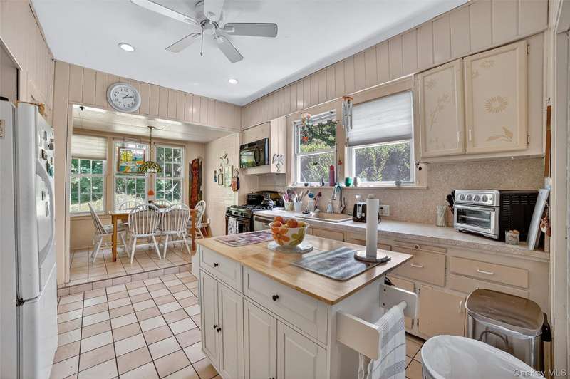 Charming front porch bungalow style village home on quiet street offering walking distance to village center, schools, shops, library, RR station and parks. The front porch says welcome home and then you step into the living room open to the dining room and eat-in-kitchen. Two bedrooms and a bath on the main floor, upstairs is a large room with a half bath and third bedroom. Unfinished basement with a semi-finished storage room. Great level yard with a patio. This is the home you have been waiting for!