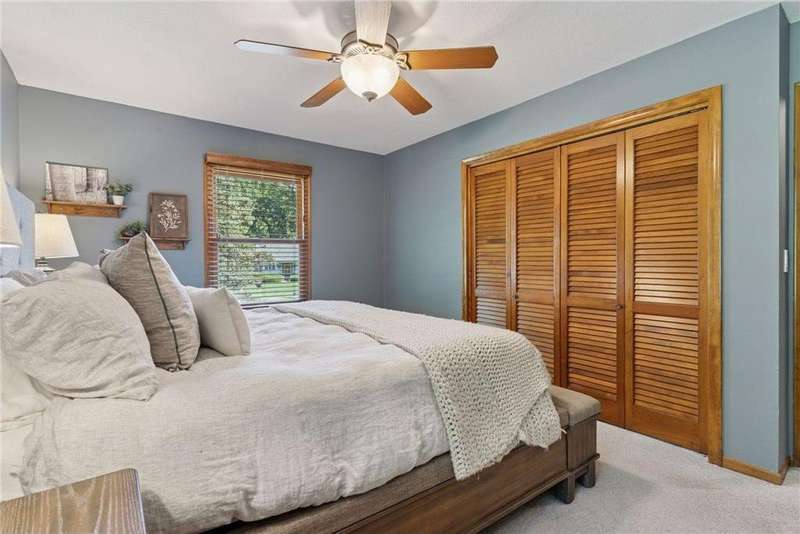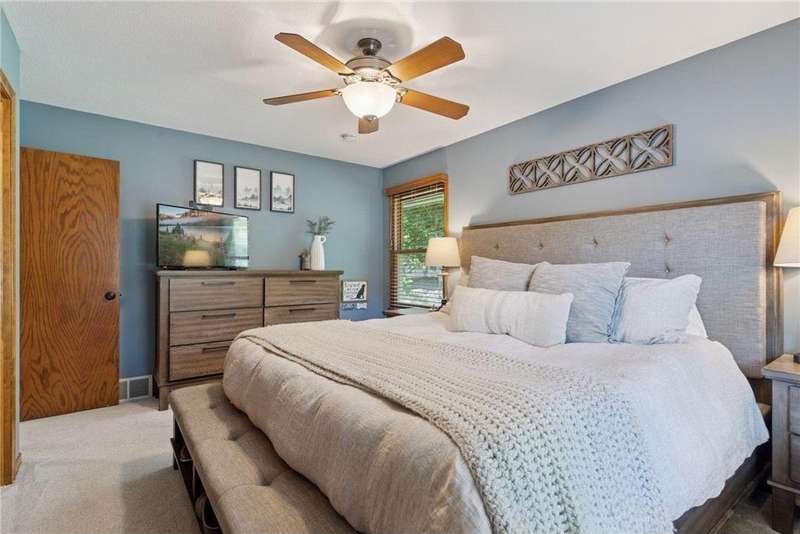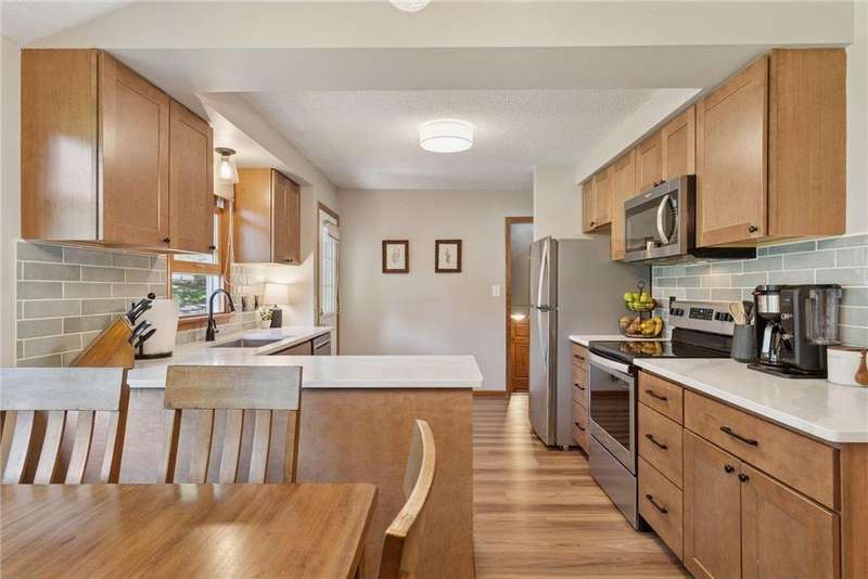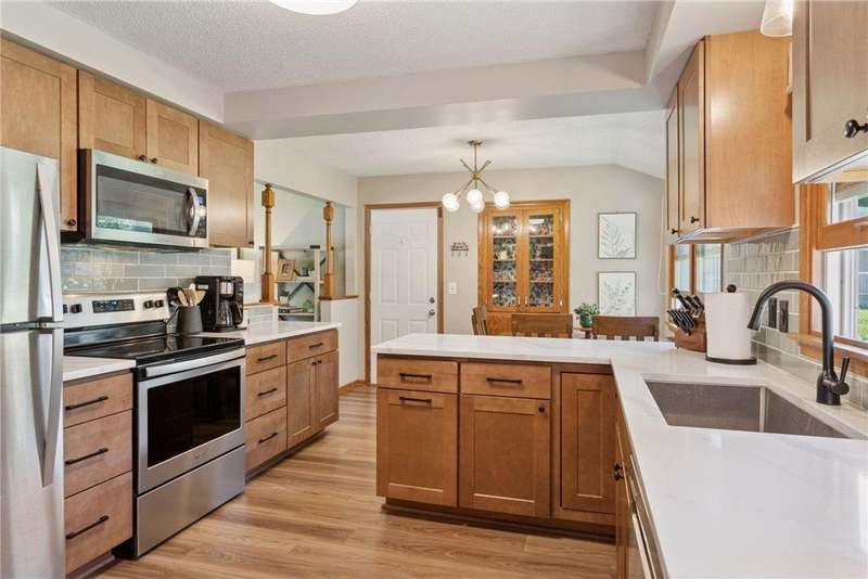 Nordic-design inspired 3-level split tucked on a quiet cul-de-sac in a highly sought-after West Bloomington neighborhood near Nine Mile Creek. Freshly painted throughout with new LVP flooring and carpeting, this home shines with today’s move-in ready style. A standout feature is the all-remodeled kitchen showcasing soft-close maple cabinetry, quartz countertops, Whirlpool stainless steel appliances, and an extra-deep undermount sink. In the lower level, an expansive family room with a fieldstone fireplace offers plenty of room for family gatherings. Three bedrooms on upper level all freshly updated. Primary bedroom boasts high-end wooden louvered closet doors. Two tastefully tiled bathrooms add to this home’s appeal. Newer windows are found throughout most of the house. Living room features a broad bay window and wood beam ceiling. The inviting paver patio—just steps from the kitchen—sets the stage for enjoyable summer evenings with friends or family time outdoor dining. The broad, landscaped yard is fully fenced for your dog (chain link abutting neighbor’s fencing). Yard includes a dedicated planting bed for gardeners, plus an attractive storage shed that is ideal for lawn & gardening equipment. A must-see home - blending modern comfort, updated decor, with soothing contemporary colors. Hurry on this one!