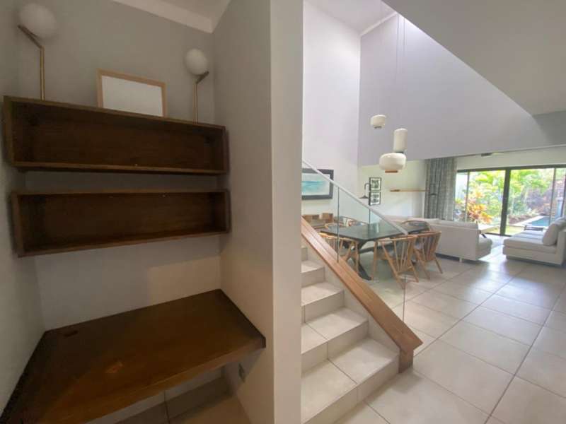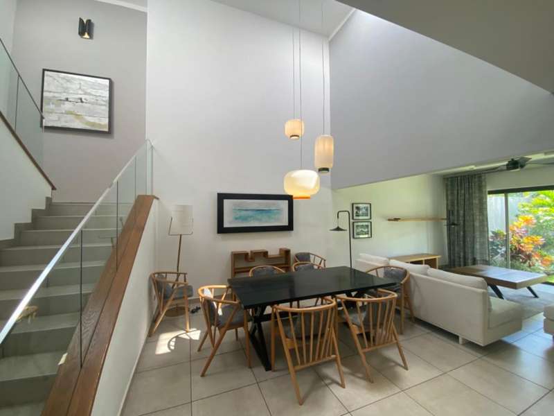 Located in a residential complex of 20 duplexes, this magnificent property of 302m2 offering four bedrooms, two of which are ensuite. The ground floor revolves around a large living room, combining American kitchen, dining room and living room into one. The living room extends onto a large terrace and creates large openings onto the garden, the swimming pool and its Kiosk to the right hand side. The rooms, located on the ground floor and upstairs, are furnished with elements of simple and discreet shapes whose minimalist colors bring a burst of light into them.