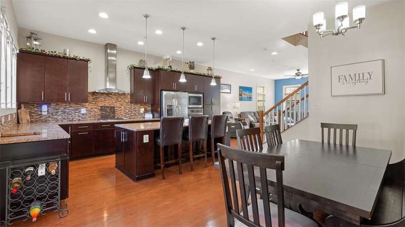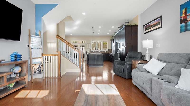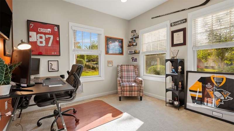 Enjoy low-maintenance living in the convenience of Venango Trails in this 3 bed, 2.5 bath END UNIT townhome available October 15. Main floor has a wide open concept with 9 foot ceilings, all-hardwood floors, recessed lighting and abundant windows. Kitchen features newer cabinetry with granite countertops, gas cooktop and a wall oven, and steps out onto an extended deck, large enough for your grill, patio set and more. Primary suite has a walk-in closet and double sinks in the ensuite bath. 2nd floor laundry (washer/dryer included) and additional enclosed den or home office space on the main level. Venango Trails offers a pool, clubhouse, gym, playground, walking trails, lakes and green spaces, and is conveniently located just minutes from I79 and plentiful dining and retail options in Cranberry & Seven Fields. North Allegheny School District!