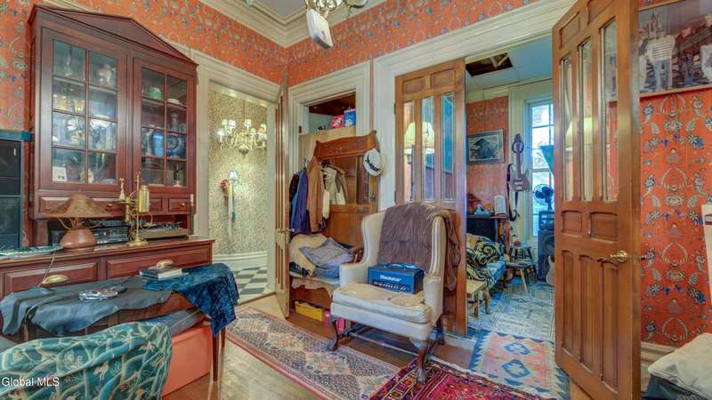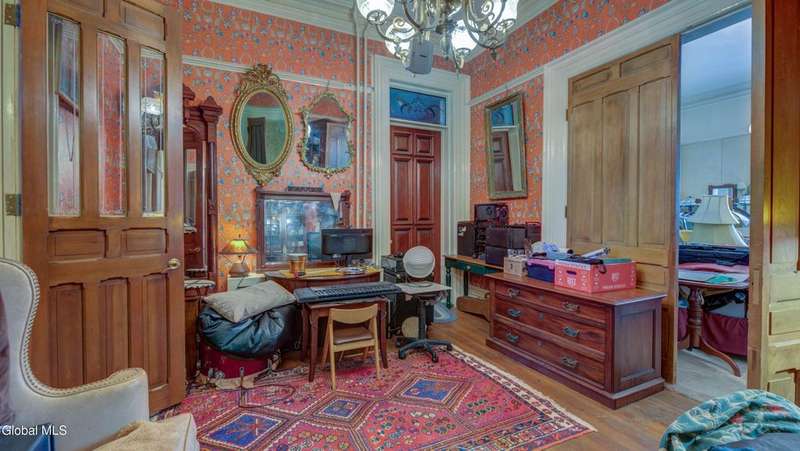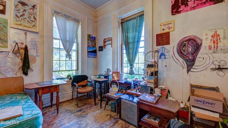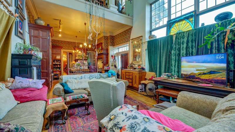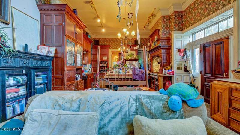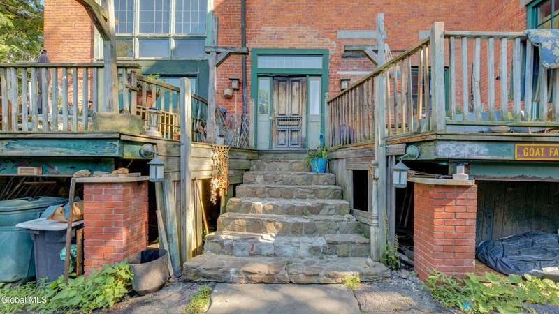 Step back in time & imagine the possibilities w/this stunning nearly 5,600 sq ft brick Italianate-style home, overflowing w/old-world charm & architectural character. Features 4 bedrooms, 3.5 baths, several fireplaces, hardwood floors, and elegant archways. The main floor offers 1.5 baths, kitchen with island, pantry, living room, dining room, music room. Upstairs boasts a balcony overlooking the great room, a primary bedroom w/private bath, 3 more bedrooms served by a full bath, & a sunlit belvedere accessed from the walk-up attic. Multiple decks provide ample outdoor space, off-street parking, and historic details throughout. With vision and care, this timeless masterpiece is waiting for the right buyer to bring it back to its former glory.