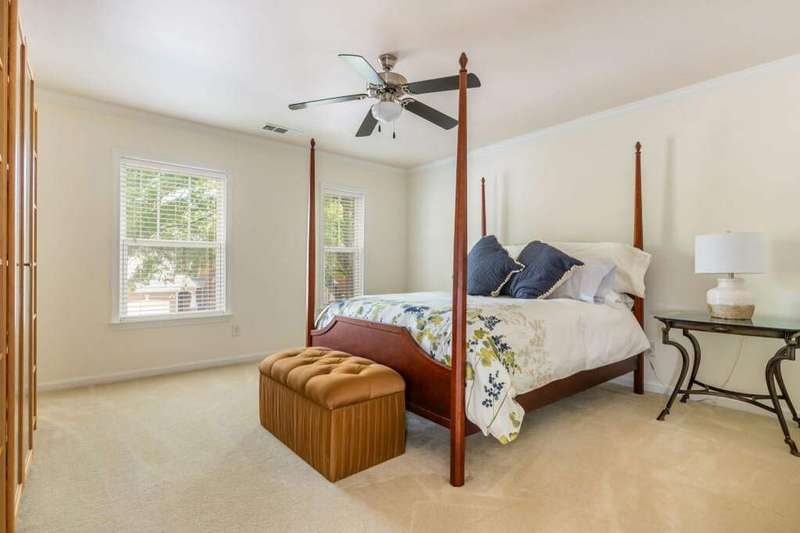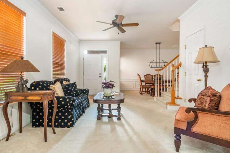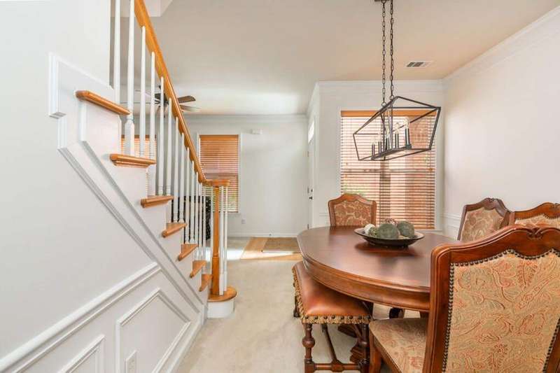 Welcome to this beautifully maintained 3-bedroom, 2.5-bathroom semi-detached townhome in the desirable Wyndham neighborhood, a perfect blend of comfort, style, and convenience! As you approach, a welcoming, well-landscaped front porch invites you home, setting the tone for the charm within. Step inside the bright foyer, which flows seamlessly into an open living room and dining area featuring classic wainscot paneling. Continue forward to discover the heart of the home, a spacious great room that opens to the gourmet kitchen and cozy breakfast nook. Both the kitchen and nook offer delightful views of the great room and the serene backyard patio. The large kitchen boasts ample storage and a convenient pantry. New lighting throughout multiple areas, a main-level laundry room, and a well-placed half bath for guests. Upstairs, you're immediately greeted by a versatile flex space, ideal as an office, exercise area, study, playroom, or whatever suits your lifestyle. Two sizable secondary bedrooms share a full bathroom, while the luxurious primary suite awaits with a tray ceiling and a spa-like ensuite bathroom featuring his-and-hers vanities, a soaking tub, a glass-enclosed shower, and a spacious walk-in closet. Outside, enjoy a private patio surrounded by wonderful landscaping, meticulously cared for by the gardening enthusiast owner. This tranquil backyard retreat also includes access to an exterior storage unit for added convenience. Recent upgrades: NEW fresh interior paint throughout, a NEWER roof, and a NEWER HVAC system. The seller is generously contributing $5,000 TOWARDS BUYER'S CLOSING COSTS to replace the carpet, making this move-in-ready home even more appealing. You'll love the community amenities, nearby parks, shopping, dining, easy access to major commuter routes, award winning school district, offering the perfect suburban lifestyle with urban conveniences just minutes away. Don't miss this exceptional opportunity!