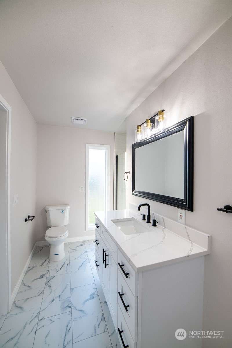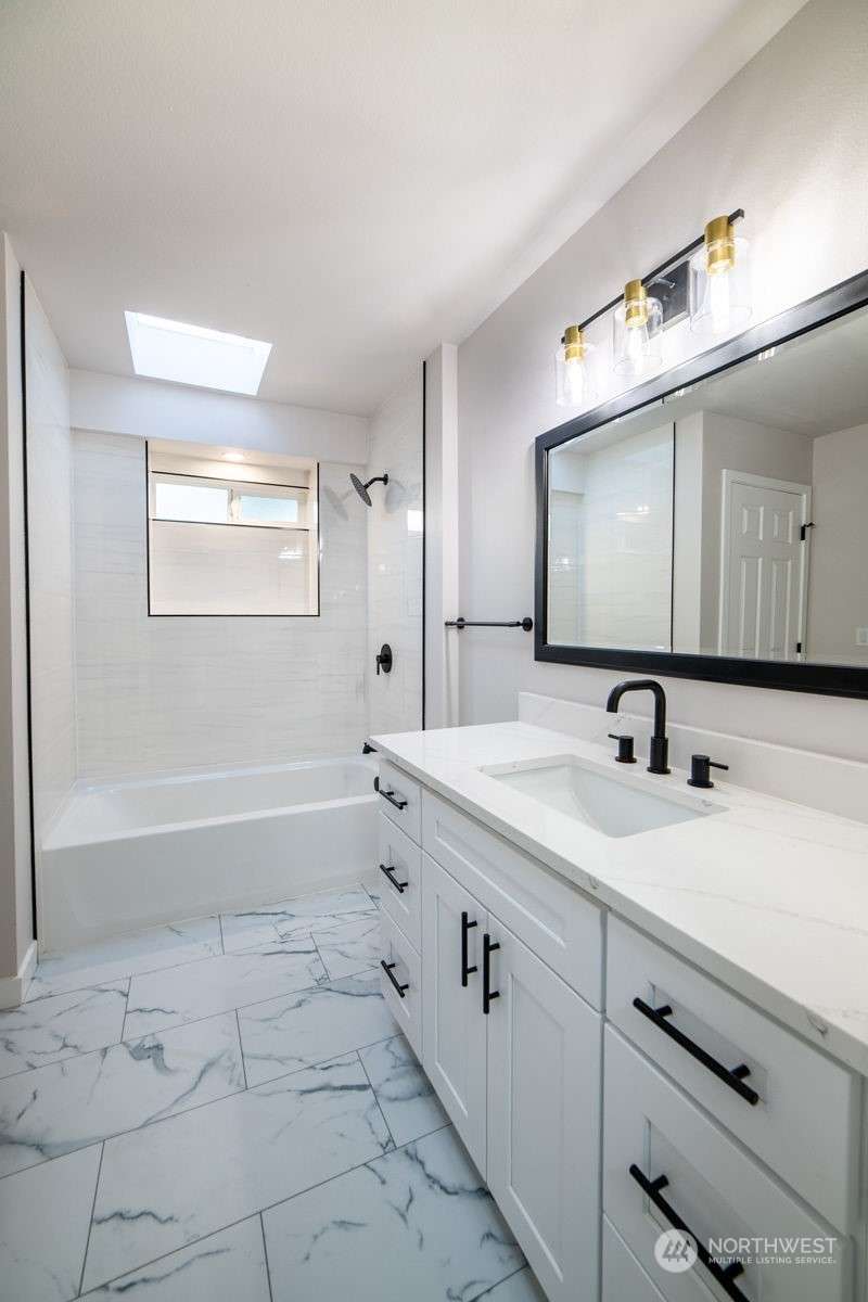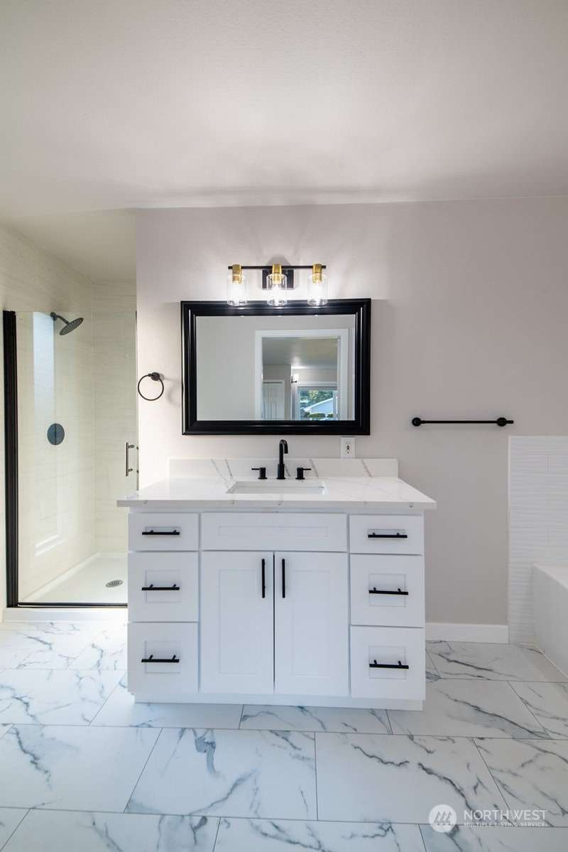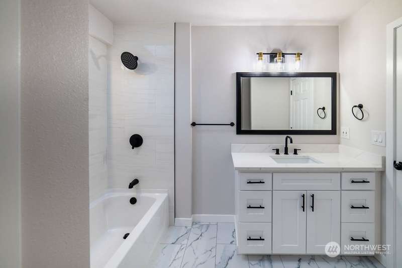 Fully remodeled 1 story home in Birch Bay Village. Community features 24 HR security, golf course, marina, clubhouse, pickle ball and tennis courts. This home is almost brand new. New cabinets, slab quartz counters, new stainless steel appliances, new hard surface flooring throughout the entire home (no carpet), new driveway, new deck. Freshly painted inside and out. Great floor plan with a big kitchen with an eating bar, 3 bedrooms plus a bonus room, awesome wet bar, spacious master bedroom with a walk- in closet and private fully remodeled bath. Heat pump for efficient heat and A/C. Interior walls are insulated for noise control and home is wired for surround sound. Huge Price reductions. Priced to move!