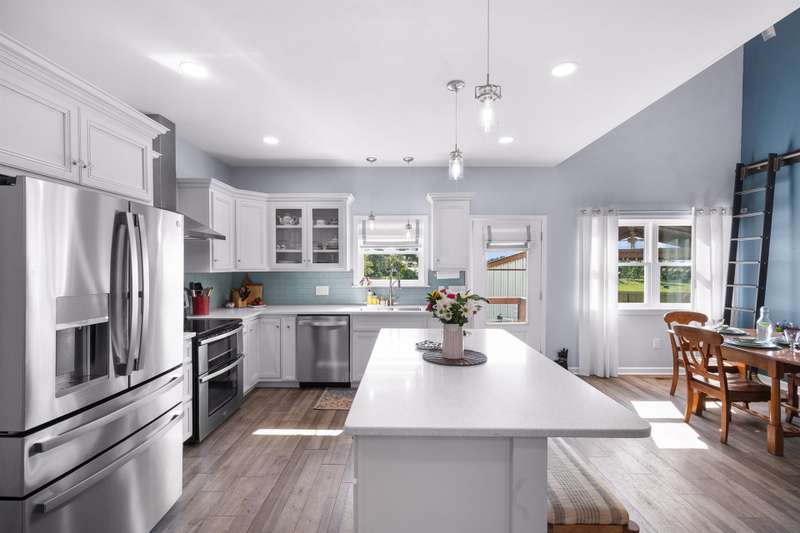 *Back on market at no fault of sellers* This custom stick built farm home combines timeless charm and modern living, all on one level. Offering 3 bedrooms, 3.5 baths, and a versatile flex living area with kitchenette, the open concept design makes entertaining effortless. The heart of the home flows seamlessly from kitchen to living spaces, creating a warm and inviting atmosphere. Step outside to breathtaking views, a sparkling pool, and a fully powered outdoor pavilion complete with prep sink, feathered granite countertops, and its own bathroom- ideal for year round gatherings. Two covered, screened porches provide perfect spots for morning coffee or evening sunsets, while the powered outbuilding offers endless options for storage and a RV hookup. This property is a rare retreat that allows you to escape the noise of the city while remaining close enough to all the conveniences you need. Just 25 miles to Winston Salem & 13 miles to Pilot Mountain State Park!