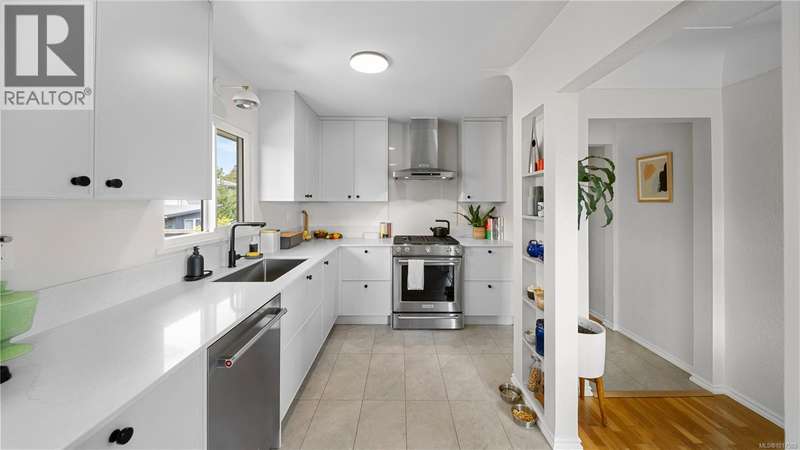 Welcome to 2720 Foul Bay Road — a thoughtfully updated 1950s bungalow featuring 3 bedrooms on the main floor plus a separate one-bedroom legal suite. Extensively renovated, this turnkey home is perfect for first-time buyers seeking a mortgage helper. Major upgrades include a new roof, chimney, gas furnace, refinished hardwood floors, and fresh paint. In 2020, the plumbing stack was replaced, 200-amp service with a separate panel for the suite was added, plus a new waterline and full home automation. A custom Swede kitchen with gas range, new dishwasher, and rebuilt deck followed in 2021. Exterior work included new perimeter drains, sewer line with backflow, stone driveway, fencing, gutters, and landscaping. Recent enhancements include an EV charger and a fully renovated main bath. Walk to Oak Bay High, Estevan Village, and Willows Beach with modern systems, stylish upgrades, and an income-producing suite, this home is truly move-in ready! (id:58403)