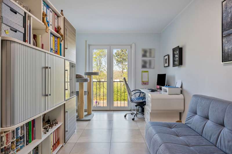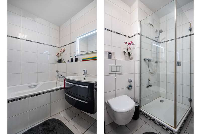 VON POLL IMMOBILIEN presents this sunny 3-room apartment with balcony and parking space in a sought-after location in Cologne-Zollstock. The approx. 94 m² apartment is located on the 2nd floor of a modern five-storey apartment building built in 2010. It impresses with its well thought-out room layout, the use of high-quality materials and an attractive south-facing orientation. The open-plan living and dining area forms the heart of the apartment. Large windows flood the room with natural light and create a bright, friendly atmosphere. From the living area, you can access the approx. 15 m² balcony, which invites you to linger with a view of the quiet inner courtyard and a sunny south-facing aspect. The modern fitted kitchen, also with access to the balcony, creates ideal conditions for sociable cooking and cozy get-togethers. The bedroom impresses with its comfortable size and idyllic view of the Jean-Löring-Sportpark. A further room can be used flexibly as a study or guest room. The bathroom is fitted to a high standard and has a bathtub and a separate shower. A guest WC completes the comfort of the apartment. The entire apartment is in excellent condition and impresses with its upscale furnishings and easy-care tiled floors, which emphasize its modern character. Underfloor heating in combination with a district heating system ensure a pleasant and energy-efficient heat supply. The offer is complemented by an underground parking space, which is included in the purchase price, as well as a cellar and a laundry room. The well thought-out floor plan and modern furnishings make this 3-room apartment a perfect place to feel at home. The property will be transferred with an indefinite right of residence for the seller. The seller retains the right to continue to live in the apartment and undertakes to pay a monthly basic rent of EUR 1,300. In addition, the property offers promising potential for value appreciation, which is further enhanced by its attractive location and good energy efficiency. Arrange a viewing appointment today and be inspired by this property!