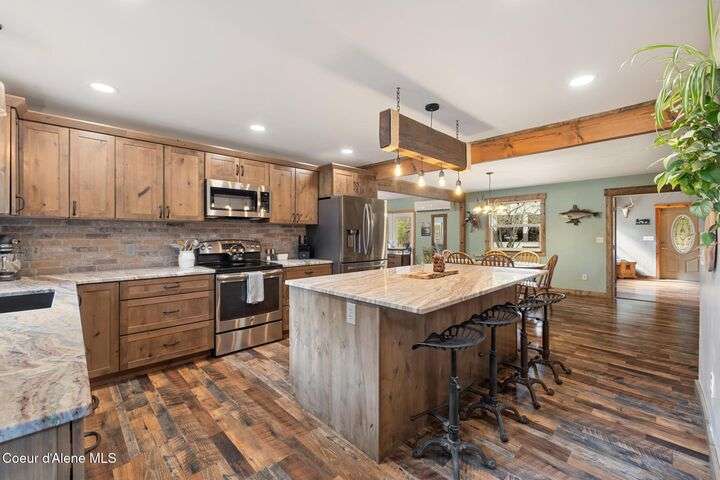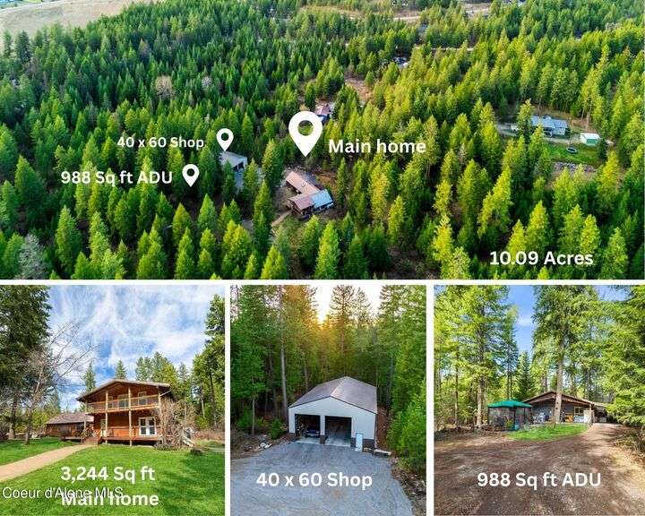 Never before listed, rare family property! This beautifully remodeled 4 bedroom, 2 bathroom, 3,244 sq ft custom rural home with a SEPARATE 988 sq ft Accessory Living Unit and a MASSIVE 40x60 SHOP is thoughtfully sprawled out on 10.09 acres of treed land. The main residence features custom finishes throughout, two spacious family rooms, granite countertops throughout the recently remodeled spacious kitchen, walk-in pantry, mud room, Kuma wood stove, large deck for outdoor entertaining, large master suite with 180 degree views of your property, and so much more. The expansive 40x60 shop provides the landscape for endless hobbies. This property truly is a hunter's paradise with exclusive hunting right outside your doorstep. Conveniently located a short distance from shopping, restaurants, lakes, mountain trails, and other amenities, this home offers the perfect balance of secluded rural living with easy access to town. Don't miss this rare, sought-after opportunity!