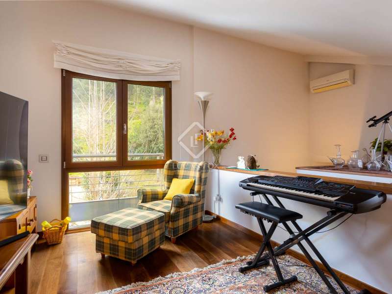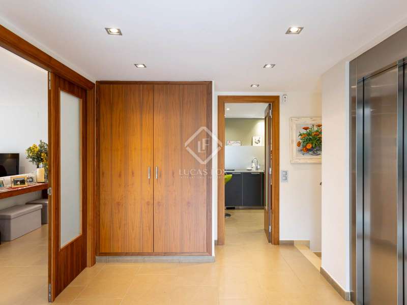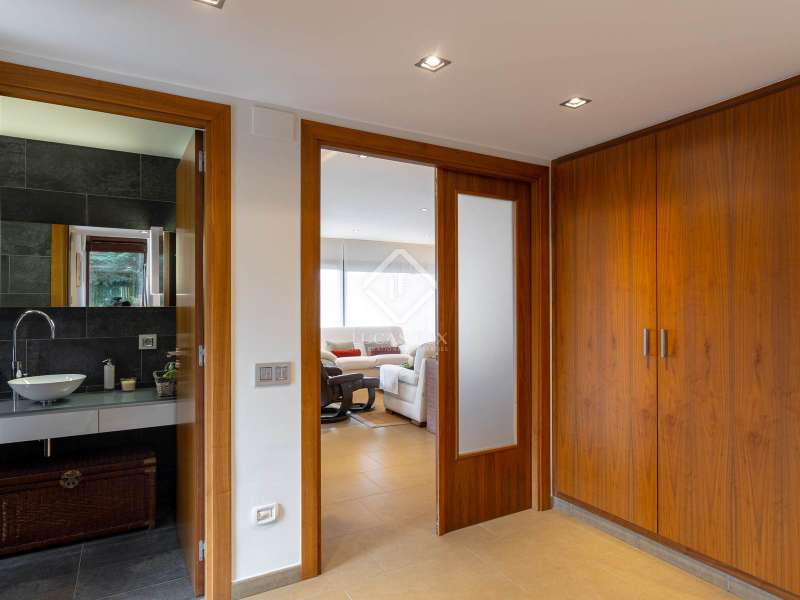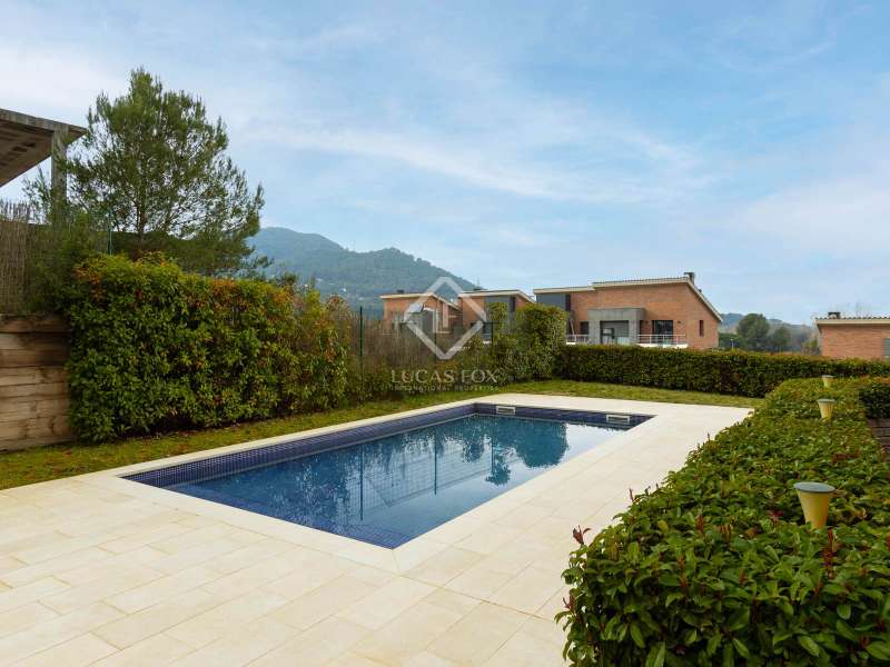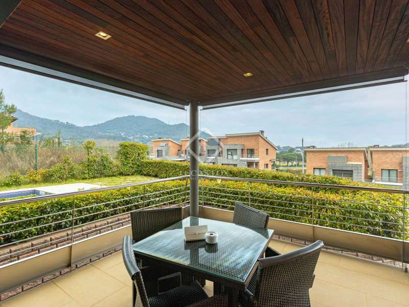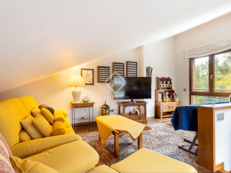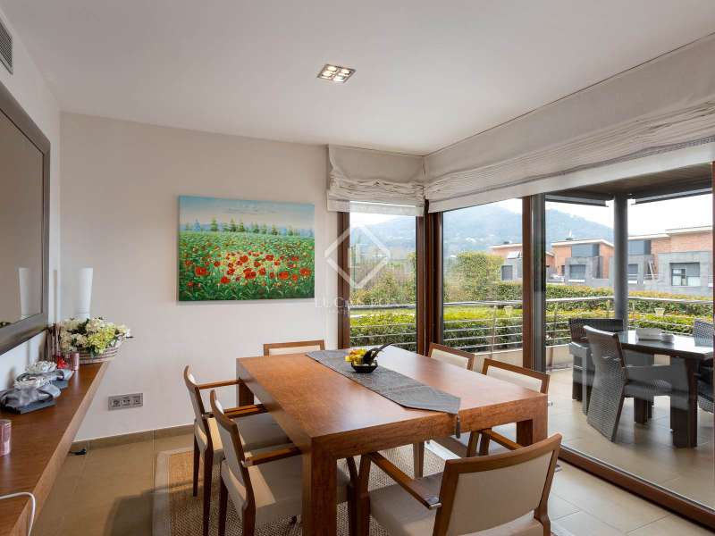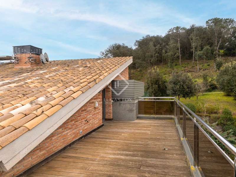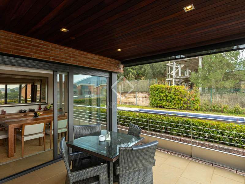 This sophisticated semi-detached house is located in a prime area of Vallromanes, just minutes from the village entrance and the prestigious golf club. Designed for maximum comfort, it combines spacious interiors, high-end finishes, and cutting-edge technology for a modern and functional lifestyle. The property is spread across four floors, all connected by a lift for added convenience and accessibility. The main floor features a bright open-plan living and dining area that seamlessly extends to an elegant garden with a private saltwater pool and an automated irrigation system, creating the perfect setting for relaxation and entertaining. The kitchen, designed with premium materials, offers both style and practicality. On the upper floor, the night area consists of three bedrooms, including a stunning main suite with a private bathroom and serene views. The attic is an open-plan space with endless possibilities, ideal for a home office, gym, or playroom. The lower ground floor offers a spacious garage with room for three cars and additional storage. Among the home’s exclusive features are underfloor heating, ducted air conditioning with a heat pump, central vacuum system, double-glazed windows, and an advanced security system with an alarm. An exceptional home in a peaceful and exclusive setting, perfect for those seeking quality living just minutes from Barcelona. Please contact us for further information.