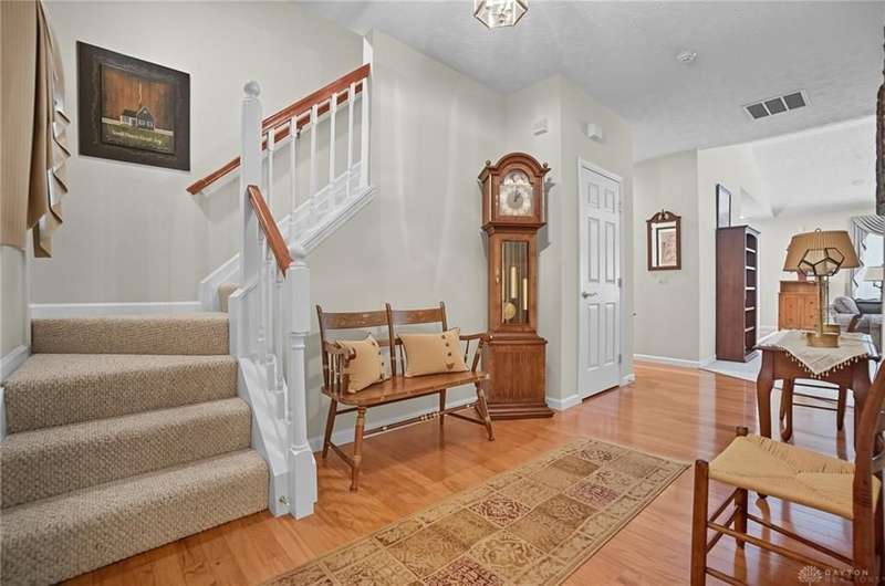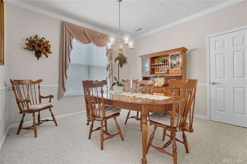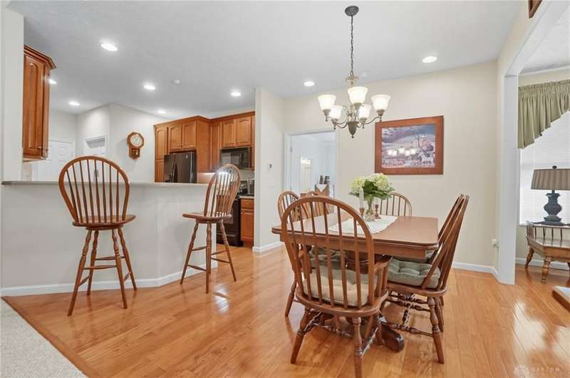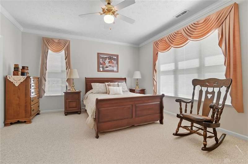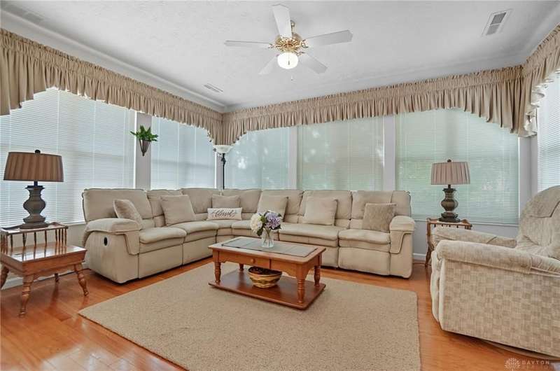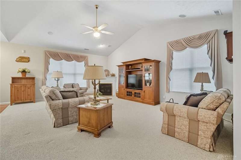 Impeccably maintained four-bedroom, two-bath patio home nestled within a serene 55+ community. With 2,358 sqft of thoughtfully designed living space, this residence offers the ideal blend of comfort and tranquility. Every day will feel like a vacation. At the heart of this beauty, an open floor plan seamlessly connects the main living spaces, creating an inviting atmosphere for daily life as well as for entertaining family and friends. A soaring cathedral ceiling in the great room adds dramatic flair while flooding the interior with natural light. The well-appointed kitchen boasts Corian counters, a convenient breakfast bar and an abundance of upgraded 42” cabinetry. Meal preparation is a pleasure rather than a chore. During cooler months, cozy up beside the gas fireplace, or bask in the bright & airiness of the sunroom where you can enjoy your morning coffee while taking in peaceful views. The bonus bedroom upstairs provides flexibility for guests, a home office, or that hobby room you have always wanted. Numerous builder upgrades and recent updates ensure worry-free living, including a heating, ventilation, and air conditioning system, humidifier and water heater installed in 2020. The water softener, updated in 2025, guarantees soft water throughout the home. Step outside to discover your private retreat, where a gentle creek meanders through mature trees, creating a natural soundtrack of peacefulness. This secluded setting offers a bit of privacy many homeowners crave while maintaining the convenience of community living. The location provides easy access to Yankee Trace for golf enthusiasts & Austin Landing for shopping and dining options. This home perfectly balances retirement living with modern conveniences and nearby amenities. Included in the HOA fee: Clubhouse, Hazard Insurance, Landscaping, Maintenance, Professional Mgt, Snow Removal & Trash Removal. Call now before someone else beats you to this pristine property. You will be thrilled you did not wait.