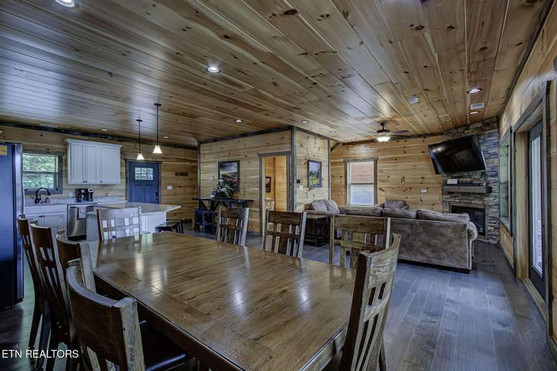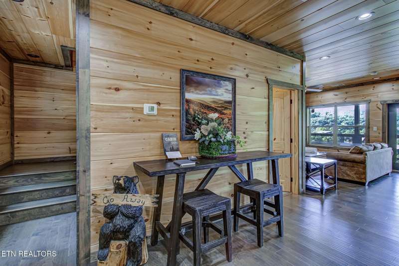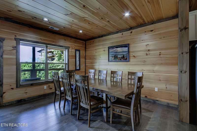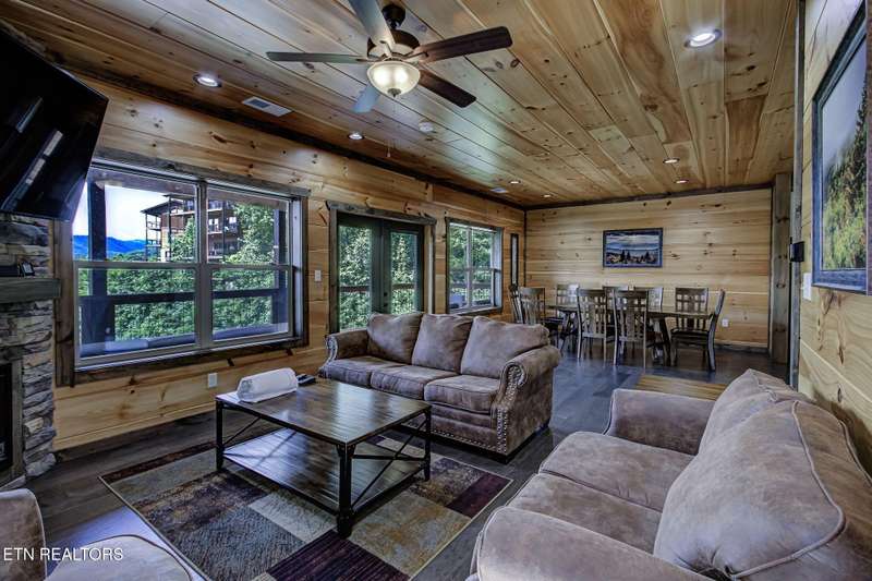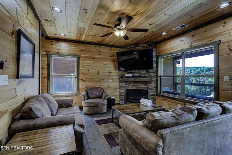 Discover the best of the Smokies with this exceptional 5-bedroom, 5.5-bath, 3-story cabin, perfectly situated in the coveted Shangrila subdivision. Enjoy sweeping, expansive views of the Smoky Mountains, including views of Mt. LeConte, from two spacious covered decks-an unforgettable backdrop for both quiet mornings and evening gatherings. Just 12 minutes to Gatlinburg and 18 minutes to Dollywood, this property offers unbeatable access to top attractions while still delivering the peace and privacy of a mountain retreat. Located on paved roads with HOA-covered exterior maintenance, this is true low-maintenance mountain living. Inside, you'll find a beautifully designed open-concept layout with a stone fireplace, leather furnishings, and a fully equipped chef's kitchen with granite countertops and stainless steel appliances. The cabin includes four king bedrooms, a bunk room, and eight total flatscreen TVs, plus a private theater and game room for endless entertainment. Whether you're looking for a high-performing investment or a private getaway, this home offers the perfect blend of location, views, and ease of ownership. Schedule your showing today and experience Smoky Mountain living at its best.