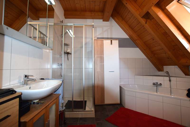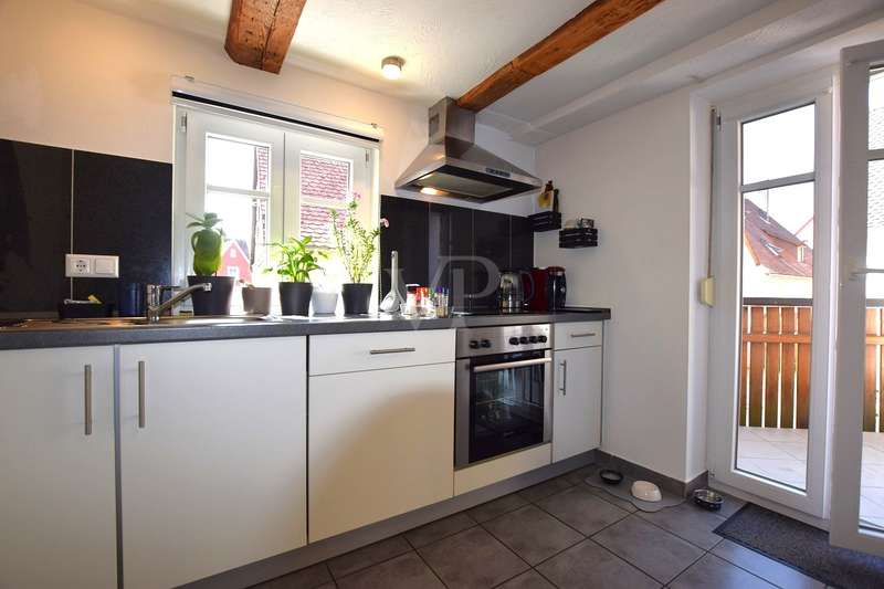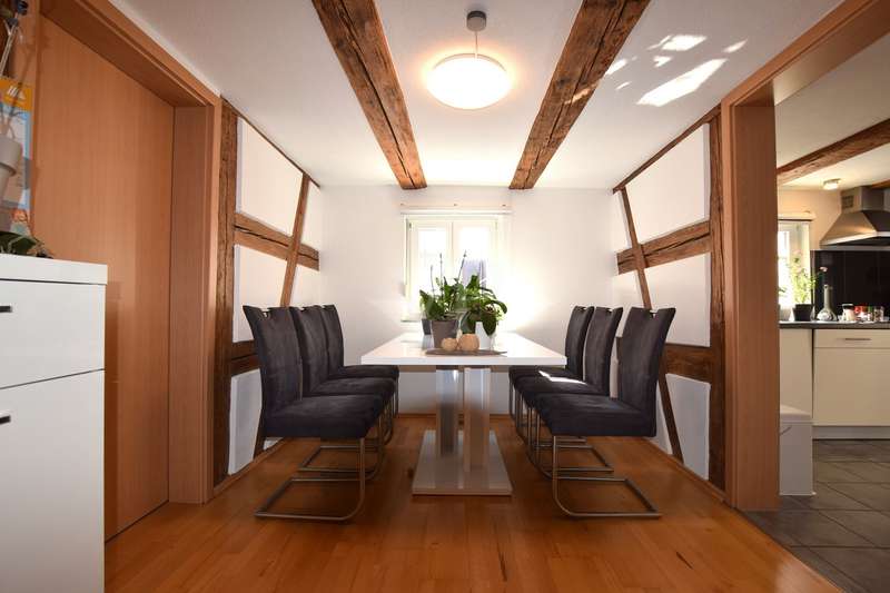 This completely renovated residential building with a total of four self-contained residential units in Feuchtwangen's old town will inspire you! The central location, modern building services and well-kept appearance in particular make this property a real gem! The property, formerly a residential building with a barn and originally built around the 18th century, consists of two residential buildings on a split level with a shared entrance and central staircase. Between 2006 and 2011, the building was completely renovated and converted into four residential units. Although the building is not listed, the refurbishment was coordinated with the monument authority. The modernization was carried out to a very high standard and in keeping with the times, particularly with regard to energy efficiency. Underfloor heating and hot water are provided by an energy-saving heat pump. A living space ventilation system with heat recovery is also installed. All residential units have a hallway, spacious living area, bedroom, fitted kitchen, bathroom with bath and shower, some with study and dressing/storage room. Thanks to the beautiful transom windows, all rooms are bright and friendly. The top floor apartment with French balcony and open kitchen/living/dining area extends over two levels up to the loft, which can be reached via a solid real wood staircase. The high-quality fittings include branded fitted kitchens and large Bosch electrical appliances, underfloor heating and real wood parquet flooring. The same applies to the bathrooms, which are all equipped with a bath and shower, WC, washbasin, bathroom furniture and illuminated mirror elements. Each apartment also has its own lockable cellar room. All apartments are in very good overall condition and can be easily re-let at any time in the event of a change of tenant. There is also potential to extend the attic for one or two further residential units. The plumbing is already in place. This attractive apartment building offers a good investment opportunity in a quiet yet central location. With a total of 4 residential units, 2 garage parking spaces and 1 outdoor parking space, the property represents a future-proof investment with a stable tenant structure. All four units are currently let to reliable tenants. We will be happy to provide you with information about the current rental income in a personal meeting. This townhouse will impress you. Convince yourself of this rare opportunity on site. We would be happy to arrange a personal viewing appointment. Please send us a fully completed contact request by e-mail. We look forward to hearing from you.