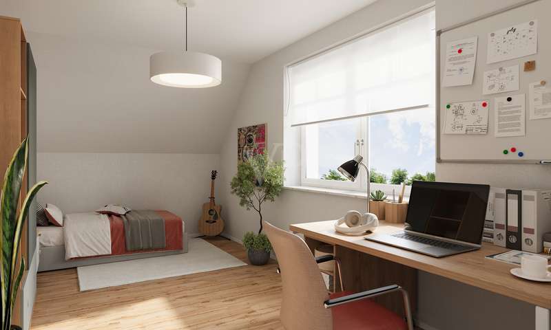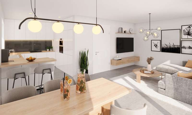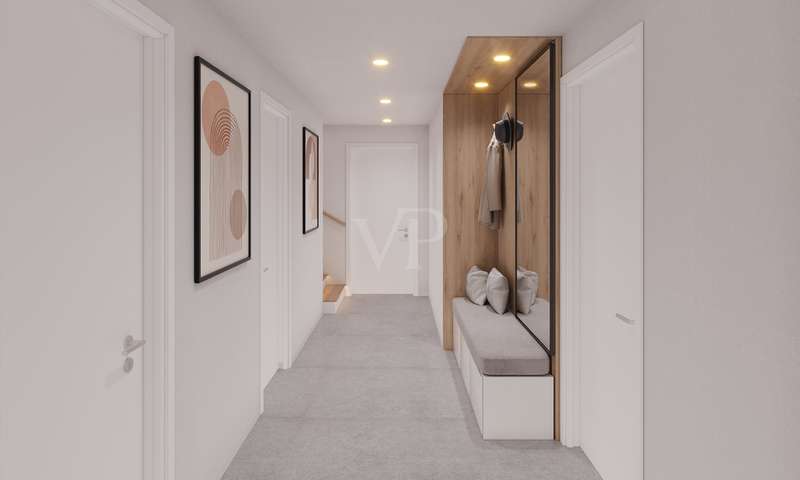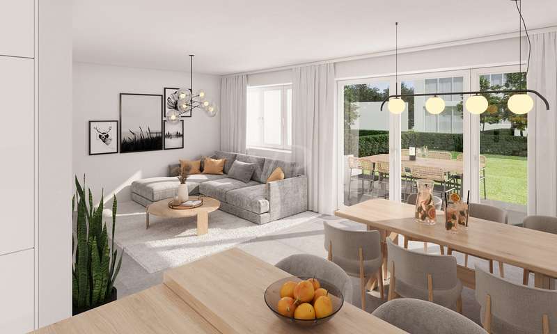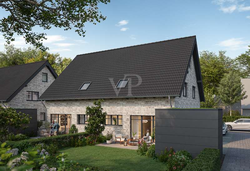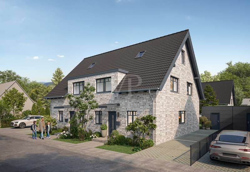 We present to you a semi-detached house that is scheduled for completion in 2025. This property offers you sufficient space and comfort on a living area of approx. 133.37 m² and a plot of approx. 246 m². It is being offered for first-time occupancy and is characterized by its modern construction and high standard of furnishings. The semi-detached house is being built according to the QNG standard as a climate-friendly new build and corresponds to energy efficiency class KfW 40+. This gives you the opportunity to take advantage of a subsidized loan of up to €150,000. The building is a timber frame construction with a pitched roof. The façade will be fitted with a clinkered, rear-ventilated curtain wall system in facing brickwork. The house has a total of five rooms, including four bedrooms and a bathroom. The plastic windows are fitted with triple insulating glazing and have an attractive color scheme: white on the inside and anthracite grey on the outside. A two-part wooden front door element has a five-point security locking system. The interior fittings include high-quality white lacquered doors with stainless steel door handles. The electrical installation meets modern standards and a Gira Standard 55 switch range in cream white or pure white is used. A special feature is the modern heating system. It consists of an air-to-water heat pump combined with underfloor heating. This is installed on both the first floor and the upper floor. Each room is equipped with room thermostats, while radiators are used in the loft. The underfloor heating ensures even and pleasant heat distribution throughout the house. The environmentally friendly technology is complemented by a photovoltaic system with storage, which meets the requirements of the thermal insulation certificate. The paving work for the driveway, terrace and access path to the house will be carried out using water-permeable paving. This promotes the sustainability of the construction project. All in all, the offer provides an excellent combination of modern living standards and energy-efficient features. Thanks to the planned construction finish and fittings, this semi-detached house is particularly attractive for families who value sustainability, comfort and functionality. Please do not hesitate to contact us for further information or a non-binding viewing. A dedicated team will be on hand to answer your questions and support you on your way to a new home.
