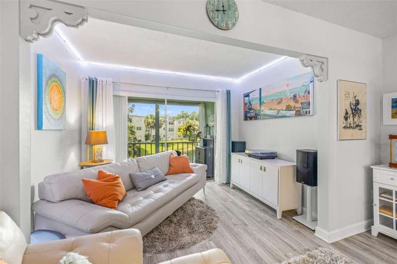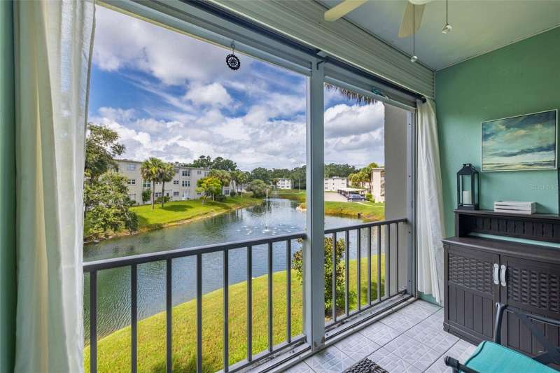 Picture yourself in the heart of Dunedin, where every day feels like a getaway. In the coveted 55+ community of Heather Lake, this beautifully updated condo invites you to slow down and enjoy the unbeatable view of the tranquil pond from your own screened-in balcony. As you arrive at your assigned carport, take the elevator to the second floor to where your new home awaits. Featuring 2 bedrooms and 1 bathroom, this home showcases a thoughtfully designed open floor plan with a living/dining room combo, plantation shutters on all windows and luxury vinyl plank flooring throughout. The light filled kitchen boasts stainless steel appliances, including a newly installed dishwasher in 2024. One of the bedrooms is thoughtfully designed with a built-in Murphy bed, making it the ultimate flex space, an office by day and a comfortable guest retreat by night. The bathroom has been tastefully updated with a modern vanity and a glass door enclosed stand up shower. This home features updated light fixtures and ceiling fans throughout. Additional highlights include a 2021 A/C unit, 2023 electrical panel, brand new roof in 2024, and roll-down hurricane shutters on the porch providing peace of mind for years to come. Heather Lake community offers a clubhouse, heated pool, shuffleboard, walking paths, and is next door to brand new pickleball courts and a community garden. Monthly HOA fees cover cable, internet, water, sewer, trash, exterior maintenance, grounds care, and pool upkeep. Located just minutes to Downtown Dunedin, you’ll find an endless variety of shops, waterfront restaurants, microbreweries, and weekly events along the marina and Main Street. The Pinellas Trail, perfect for biking or walking, runs right through downtown, while the Dunedin Causeway provides a scenic route to Honeymoon Island and Caladesi Island, two of Florida’s most beloved state parks. World-famous Clearwater Beach is just 15 minutes south, while Tampa International Airport and St. Pete–Clearwater International Airport are both easily accessible for travel. For golf enthusiasts, the historic Dunedin Golf Club and renowned Innisbrook Golf and Tennis Resort are close by, and for healthcare peace of mind, Mease Dunedin Hospital is only a short drive away. Whether you’re looking for a full-time residence or seasonal retreat, this property offers more than a home, it offers a lifestyle. Schedule your private showing today and experience the magic of Heather Lake living!