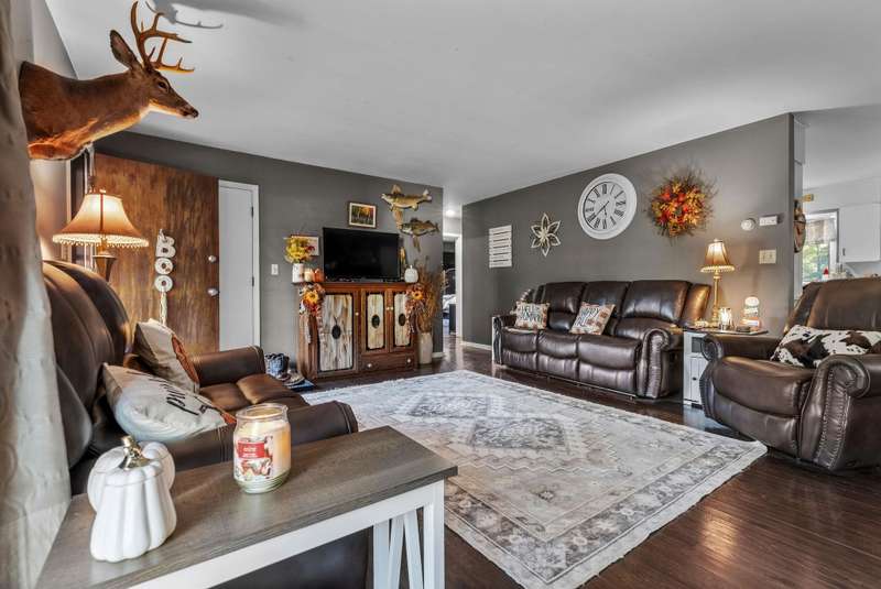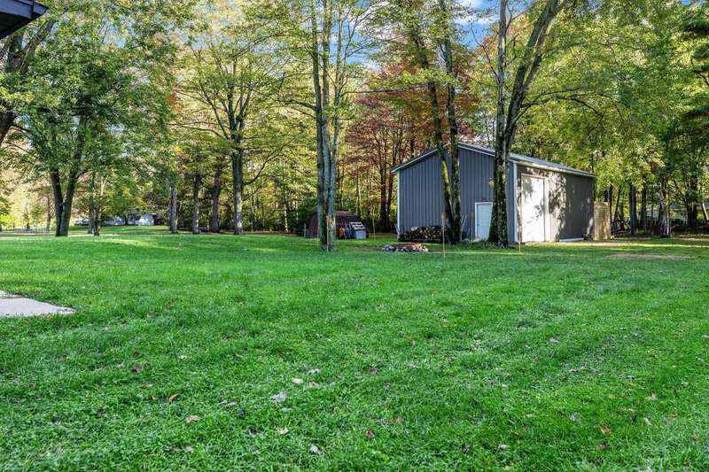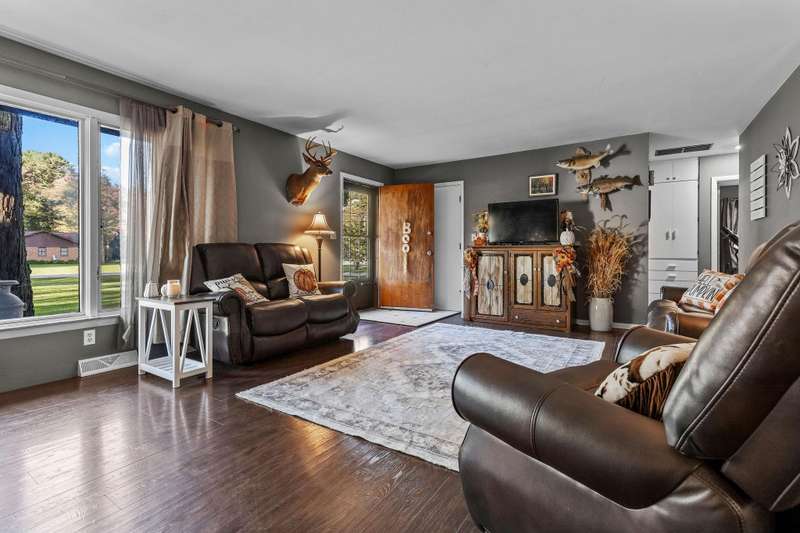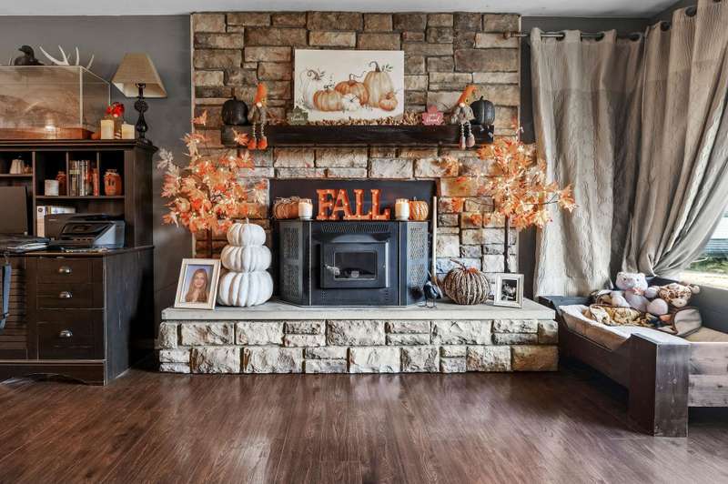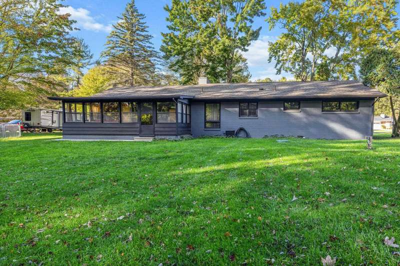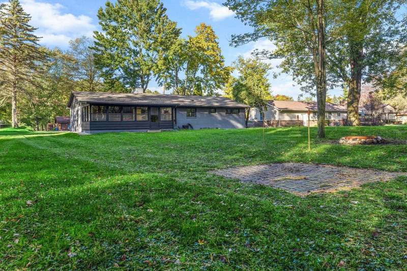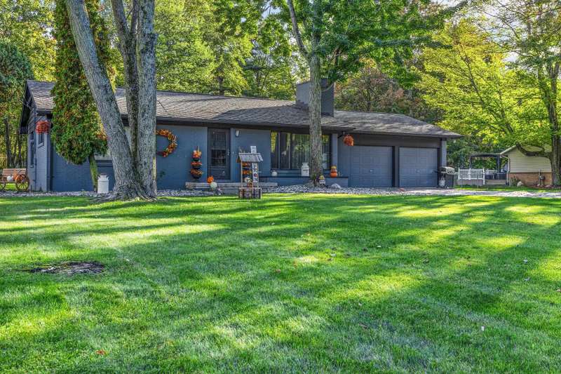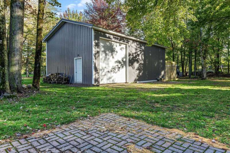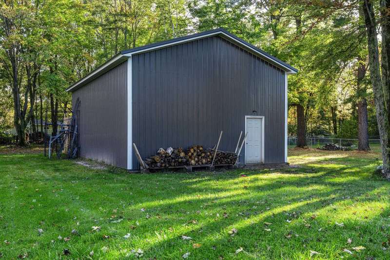 Welcome to your perfect blend of comfort, character, and country living! This beautifully maintained property offers everything you need to enjoy peaceful living just outside the city limits. Nestled among mature trees, this home provides a private, serene atmosphere while keeping you close to all the amenities of town. Step inside to discover a warm and inviting living room featuring a custom stone fireplace with a corn-burning pellet stove insert. perfect for cozy evenings. The spacious 3-season room is ideal for relaxing, entertaining, or simply enjoying the views of the lush surroundings. This home has been thoughtfully updated, including a new roof in 2021, 25x40 Pole barn with 14ft ceilings built in 2019, a new water heater in 2025, and a new septic field installed in 2019, giving you peace of mind for years to come.
