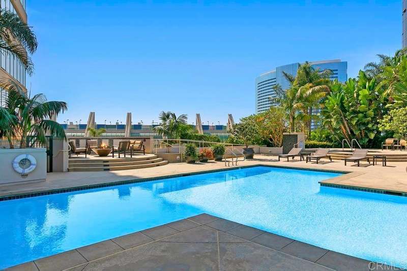 Experience luxury living at its finest in Harbor Club, one of downtown San Diegos premier high-rise communities. Perfectly positioned in the coveted East Tower, this move-in ready residence offers breathtaking water views, mesmerizing sunsets, and front-row access to the vibrant activity along the bayfront. Inside, youll find an expansive open-concept living space featuring warm luxury vinyl plank flooring, a cozy fireplace, and floor-to-ceiling windows that fill the home with peaceful, natural light. The primary suite is a true retreat, complete with dual vanity sinks, a jacuzzi soaking tub, and a remodeled walk-in shower. In-unit laundry adds everyday convenience to this stunning urban oasis. Harbor Club boasts a sophisticated ambiance with resort-style amenities that are second to none. Lush tropical landscaping surrounds the pool and jacuzzi, while multiple fire pits, an outdoor cabana area with grilling stations, and a poolside amenity room set the perfect stage for entertaining. Additional perks include a fully equipped fitness center, library, 24-hour concierge, and an on-site maintenance teamall designed to support a lifestyle of ease and elegance. With only three residences per floor and a rare downtown cul-de-sac location, Harbor Club offers unparalleled privacy and convenience. Enjoy walkable access to Petco Park, the trolley, fine dining, and just blocks to grocery stores, Seaport Village, and the Rady Shell, San Diegos premier waterfront concert venue. Dont miss this exceptional opportunity to own one of the citys most iconic views.