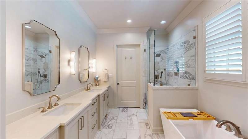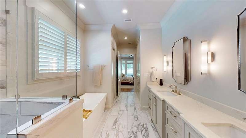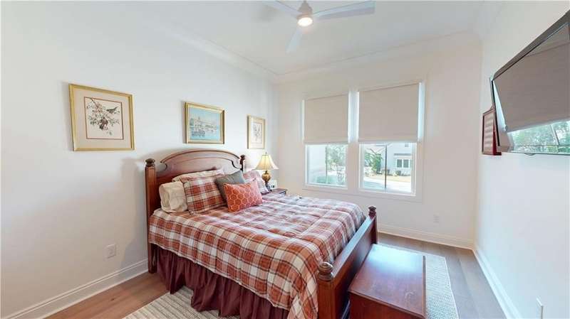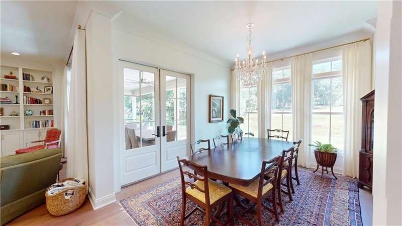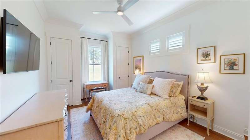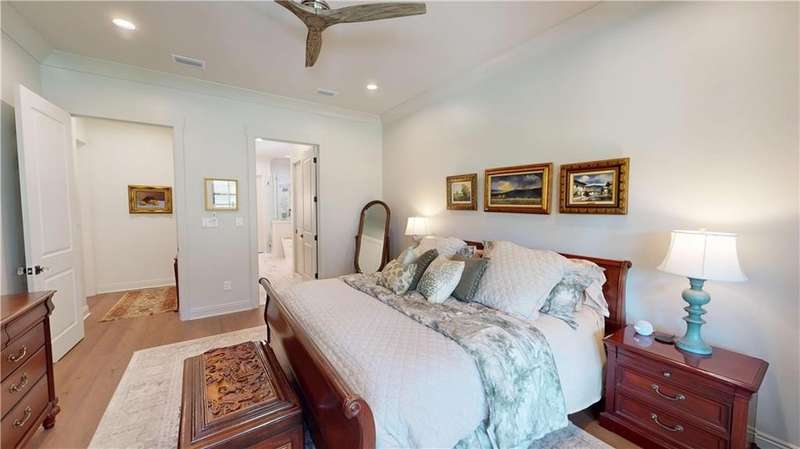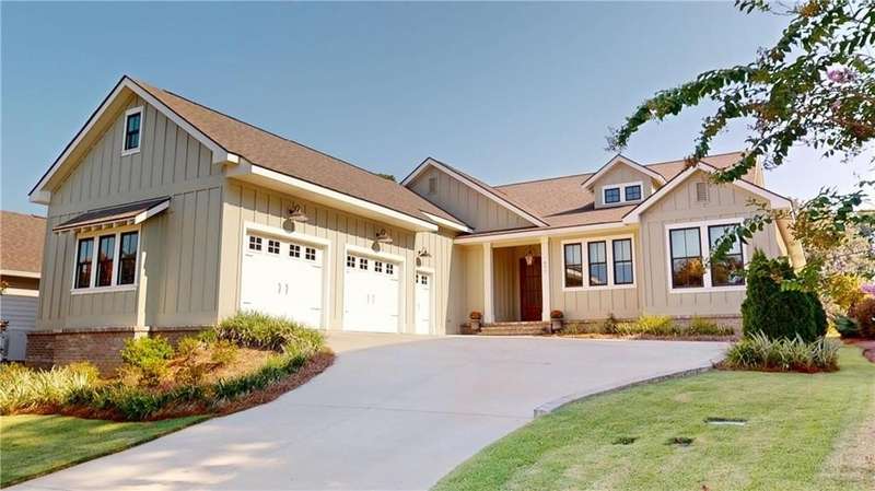 Welcome to this stunning one story cottage-style home nestled in the gated Battles Trace at The Colony community in Fairhope, Alabama. Built in 2022, this beautifully appointed residence offers 2,400 square feet of well designed living space. The floor plan offers three spacious bedrooms and three full bathrooms, all on the main level, for effortless single-story living. The primary suite is a peaceful retreat with a walk-in closet, separate shower, soaking tub, double vanity and private water closet. Included in the ensuite bathroom are floor to ceiling, built-in cabinets and drawers. Walking into the primary bedroom, the first thing you notice is the view to the covered back porch with a beautiful grassy common area and a large oak tree. Key Features in this home include an open-concept layout, featuring custom built-in bookshelves and a fireplace with gas logs in the living room. The kitchen is a chef's dream with stainless-steel appliances, a 6-burner gas range, quartz countertops, and floor to ceiling cabinetry. French doors open to a beautiful covered porch with ample seating spaces and a wood burning fireplace with a gas starter. At the front of the house, the study provides a quiet workspace. Up a flight of stairs, the attic is floored with the possibility of one day making it an extra bedroom or bonus room. Extra touches in the home includes a mud room zone as you enter from the garage with a large closet to store all your extras and a dry bar with a beverage refrigerator. Built to Fortified-Gold standards on a solid slab foundation, this home includes an attached two-car garage and a hobby garage with a dedicated plug for a golf cart. The landscaped yard has sprinkler irrigation. The neighborhood amenities include a lake with fishing, a community garden and the opportunity to join the Lakewood Country Club (initiation fee required). Buyer to verify all information during due diligence. Listing Agent is the seller and a licensed real estate agent in the state of Alabama.