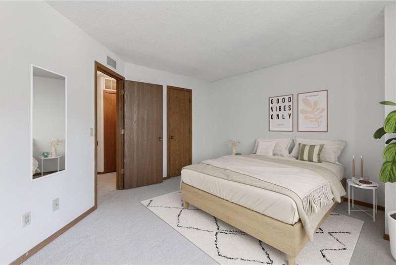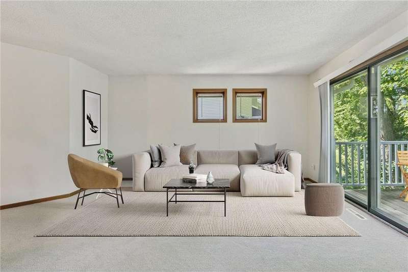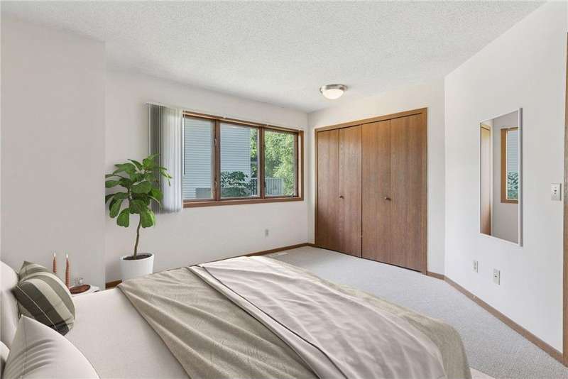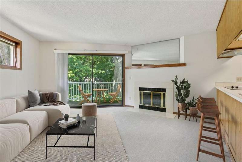 Beautiful second floor townhome with tree top views! This quiet end unit townhome has a desirable open floor plan featuring spacious family room centered by a cozy fireplace and fills with natural light, kitchen has convenient breakfast bar and offers an abundance of cabinet and countertop space. Comfortable bedroom has a lg closet and attached full bath, also enjoy the luxury of in unit laundry. Relax on your deck overlooking this private quiet setting. All of this located in the highly sought after Eagan location close to shopping, restaurants and access to highways for easy commuting. New carpet and fresh paint throughout, ready for you to move in and call this your home!