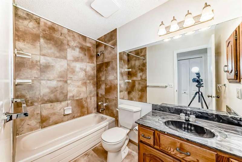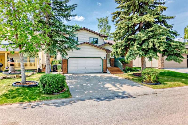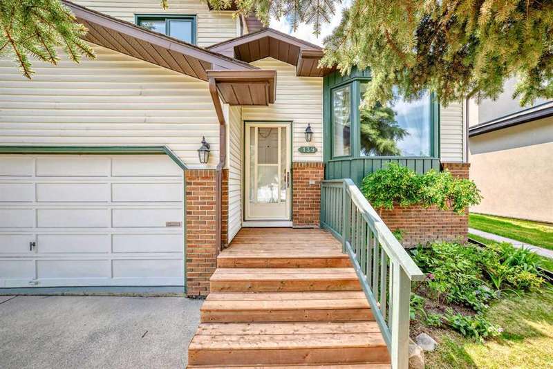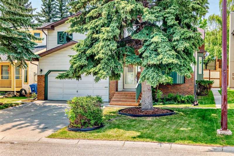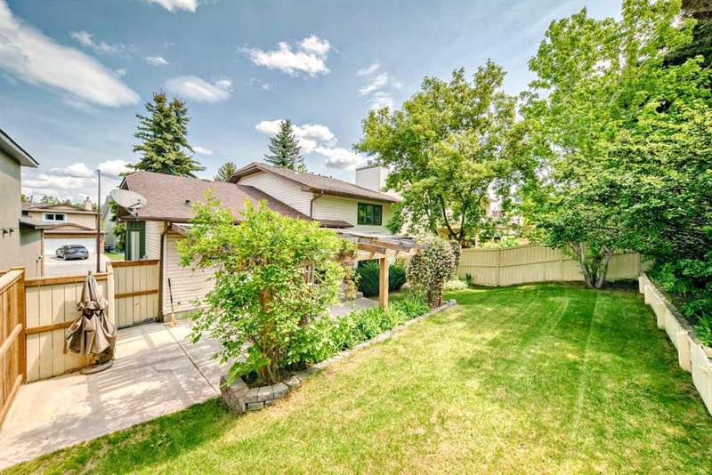 ***** NEW PRICE SELLER SAYS SELL ***** Location, location, nestled on a quiet crescent walking distance to both schools and steps to the treed ravine pathway. Great curb appeal. Brand new MicroPro sienna warm brown pressure treated deck boards just installed on the front steps. Sunny southwest facing park like backyard is fenced and private. New treated wood stepped style fence on the westside accommodates the terraced yard nicely. Very nice concrete patio, planter, pergola with vines and gas line for BBQ. Kitchen has raised panel oak kitchen cabinets, updated appliance, pantry and bay window overlooking your huge backyard oasis perfect for summer barbeques and nights under the stars. Convenient main floor laundry with newer washer and dryer. Free standing wood burning stove (cleaned one year ago) with brick surround in the family room. Total of 4 bedroom. Primary bedroom with 3 piece ensuite with upgraded shower enclosure and toilet. Main 4 piece bathroom has upgraded tile, toilet and brand new exhaust fan. Updated with beautiful neutral 18"X18" ceramic tile flooring throughout the kitchen, nook, front and back entry and all three bathrooms. Double front attached garage insulated and heated. Copper water pipes not poly-b. Upgraded BP Everest 40 roof shingles in 2008. Upgraded attic insulation to lower energy bills and improve home comfort. Eavestrough approximately 5 years old. Located within walking distance to Olympic Heights Elementary and John Costello School. Don’t miss out call your favourite realtor and book your private tour of this well maintained Strathcona Park home!