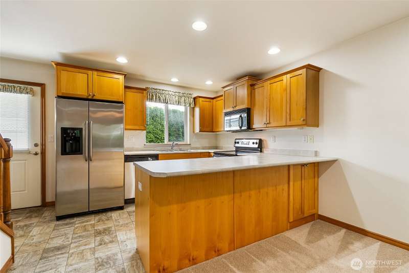 Discover this clean and lightly lived-in 2 bed, 1.5 bath condo in the centrally located West Baker Place. Tucked away in a quiet corner of Bellingham, yet just steps from shopping and I-5. Enjoy the spacious kitchen with stainless steel appliances and a large eat-in peninsula, plus a cozy gas fireplace for chilly evenings in the spacious living room. The main floor also features a laundry room and half bath, while upstairs offers two generous bedrooms and a full bath. Step outside to a fully fenced yard with a large deck—perfect for relaxing or entertaining. Includes a 1-car garage and a newer roof on the building!