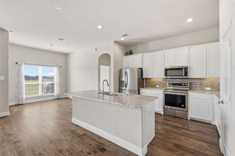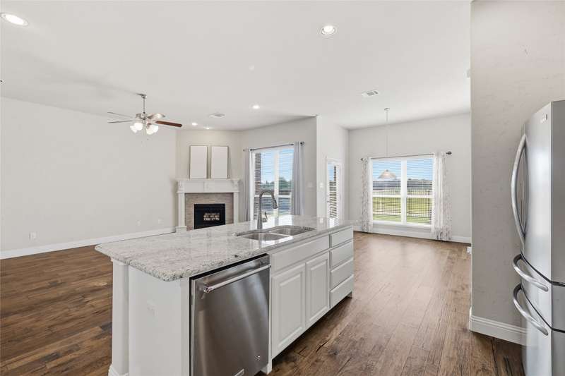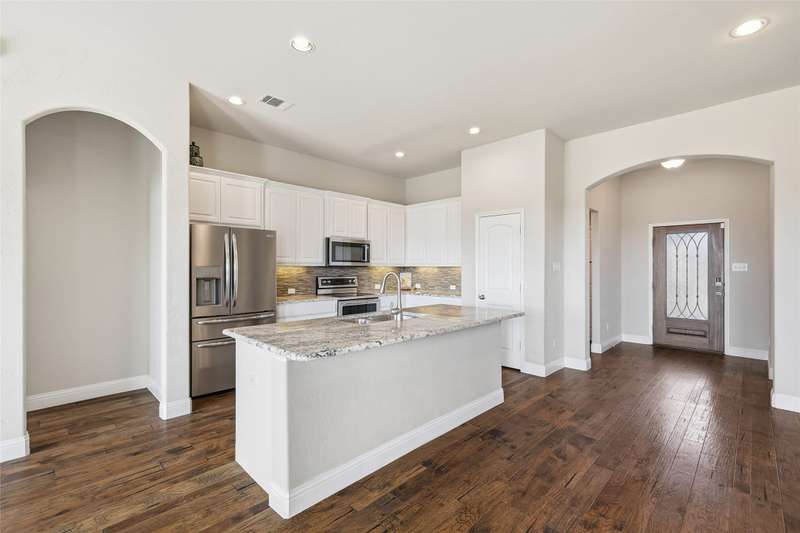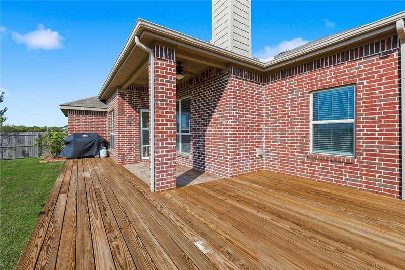 Rare Greenbelt Find No MUD, No PID, and a Voluntary HOA!Welcome home to this beautifully upgraded Wyndham Custom Home, ideally situated with peaceful greenbelt and trail views. A wrought iron fence with a gate provides easy access to the trails, while the covered patio and extended wood deck are perfect for relaxing and enjoying the tranquil scenery.Inside, youll find stunning hardwood flooring, custom wall texture, and rounded corners throughout. The upgraded kitchen features granite countertops, a stylish backsplash, 42 white cabinets, and a large island that opens to the spacious dining and living areas. The wood-burning fireplace and greenbelt views make this space warm and inviting.A private home office with French doors offers the perfect work-from-home setup. The primary suite features vaulted ceilings, large windows with peaceful views, and the convenience of a laundry room that connects directly to the primary closet.Enjoy a prime location with easy access to North Loop 288, I-35, UNT Discovery Park, UNT, TWU, Downtown Denton, and all the shopping and dining along University Drive.Outdoor grill, refrigerator, washer and dryer are negotiable.