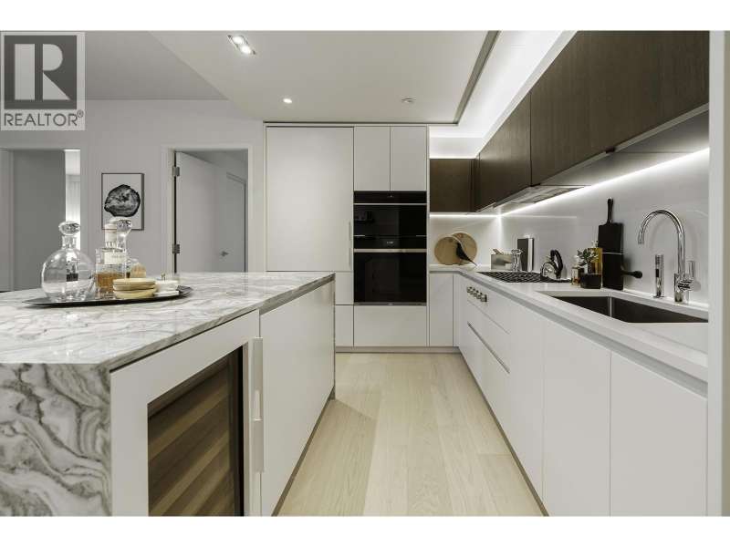 This quiet, NE facing corner 2 bed+den+flex suite in Legacy on Dunbar features elegant finishings of exceptional quality. Spacious rooms throughout make furniture design and displaying artwork easy. Bright den extends from primary bedroom for perfect office or hobby room. Balcony features heated gas fireplace. Interiors crafted by Trepp Design include design forward kitchen highlighted by Brazilian marble island, motorized Italian cabinetry with LED lighting, elegant in-drawer cutlery organization system, large format Sub-Zero+ Wolf appliances. Ensuite features floating halo-lit vanity, frameless glass limestone shower stone slab feature wall, Dornbracht faucets. Heating + cooling, concierge, rooftop terrace+ lounge, gym+ sauna. 2 EV parking stalls+storage included. (id:58403)