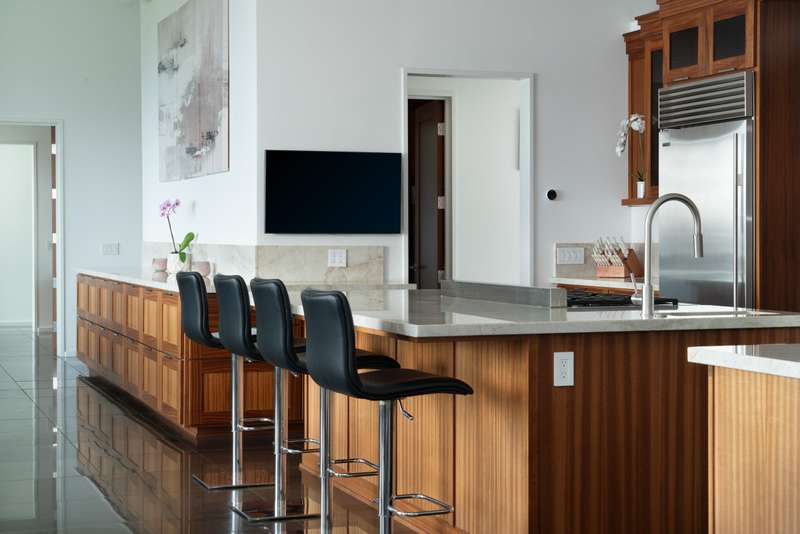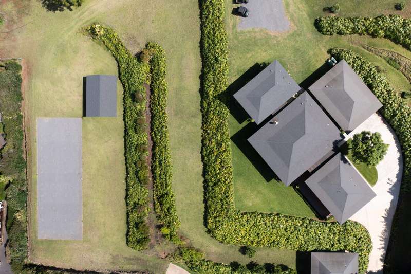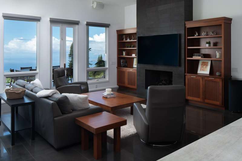 Set in one of Kula’s premier Upcountry locations, this nearly 4,000 sq ft single-level residence showcases modern design, seamless flow, and commanding views of Lanai, Kahoolawe, and Molokini. Clean architectural lines, high ceilings, and expansive glass walls create a sense of openness while framing the panoramic ocean views. The thoughtfully designed floor plan centers around a spacious great room that connects the living, dining, and kitchen areas to an expansive lanai, ideal for effortless indoor-outdoor living and enjoying evening sunsets. The kitchen is a contemporary showpiece with custom cabinetry, stone countertops, and top-tier appliances, designed for both form and function. The spacious primary suite, located at one end of the home, features walk-in closets, dual sinks, and a private office entrance. Two guest suites are thoughtfully placed on the opposite side of the living space, ensuring privacy and maintaining the same standard of quality as the rest of the home with upper loft areas for additional space. The home includes three bedrooms and three bathrooms, along with a 1,100 sq ft garage that includes an office and storage, and a 600 sq ft auxiliary building suitable for a studio or other creative space. This contemporary home was designed with intention where every room connects to the land, light, and views that define Kula living.