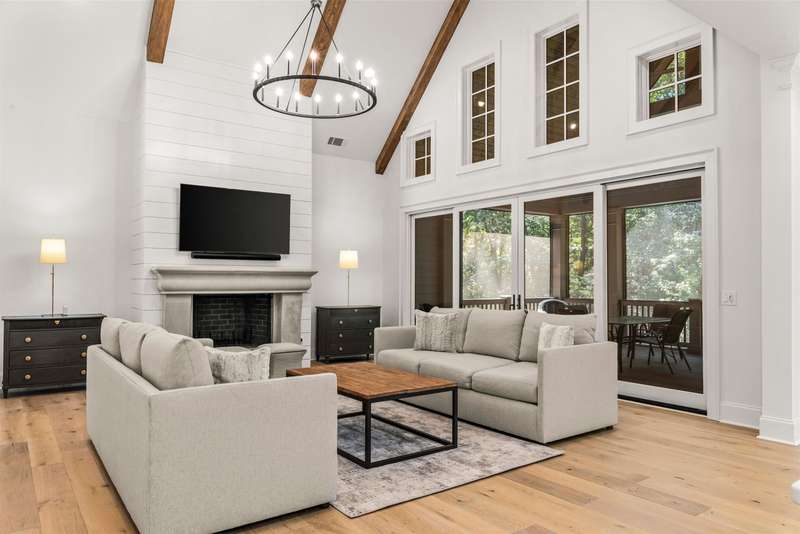 ENJOY LIKE NEW CONSTRUCTION WITH SHARED LAKE ACCESS AND PRIVACY IN REYNOLDS LAKE OCONEE. This 5 bedroom, 4 full and 2 half bath residence offers beautiful finishes, spacious living areas, and exceptional outdoor spaces, all set on a peaceful, private lot tucked away on a quiet street. Through striking iron and glass double doors, you’re welcomed into a dedicated office with coffered ceilings, ideal for a quiet workspace. The large great room features a fireplace with shiplap accents and a stone mantle, framed by a wood beamed ceiling, and opens to a private screened in porch with a stone wrapped wood burning fireplace, perfect for year round relaxation or entertaining with friends and family. The adjacent gourmet kitchen offers an expansive island, Wolf dual fuel range, high end stainless steel appliances, beverage center with built in icemaker, and a light filled dining area with access to the grilling deck. Off the foyer, a beautifully appointed powder room leads to the spacious primary suite with a spa like bath including a soaking tub, dual vanities, and a large walk in shower. A generous laundry room and walk in pantry are located just off the kitchen, designed for both everyday ease and entertaining convenience. The terrace level expands the home’s livability with a large secondary living room, custom wet bar, and access to a quiet covered patio that overlooks the backyard. This level also includes a guest bedroom with private bath, two additional bedrooms with a sizeable shared bath, and a built in pet nook under the stairs. Above the attached two car garage, a private guest suite with full bath provides a comfortable retreat, making it ideal for visiting family or long term guests. Outdoor living is a true highlight, with multiple areas designed for gathering, dining, and unwinding. From the screened porch with fireplace to the open grilling deck and the quiet covered patio, the home’s layout encourages a seamless indoor/outdoor lifestyle. The private lot is beautifully landscaped and offers a sense of seclusion while still being just steps from shared lake access, allowing for effortless enjoyment of boating and water activities. With high end finishes throughout, thoughtful design, and a location that offers both privacy and convenience, this home delivers the best of Reynolds Lake Oconee living.Ideally situated just minutes from dining, Publix, Linger Longer gate, and a quick boat ride to the Ritz Carlton and the Lake Club. Membership available.