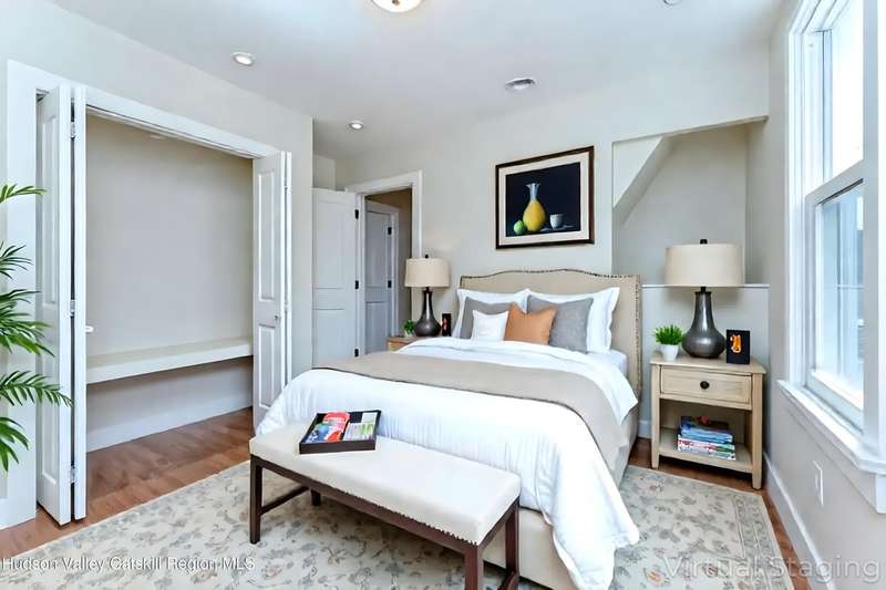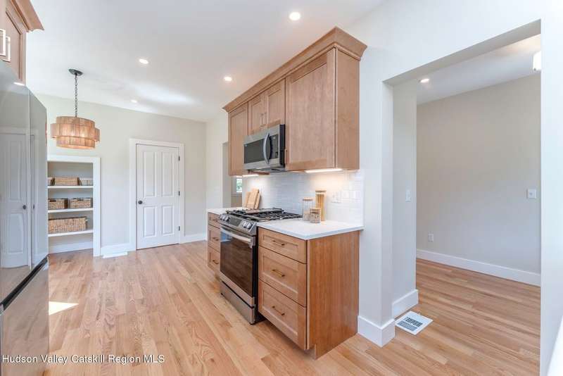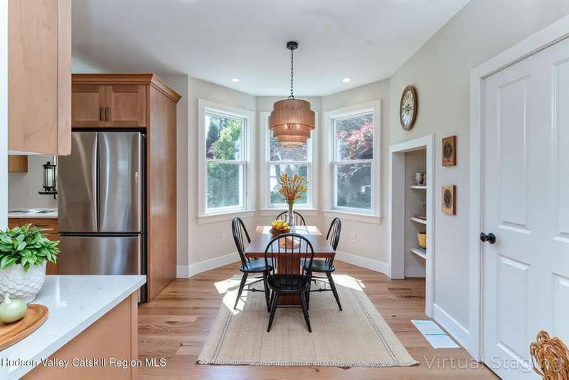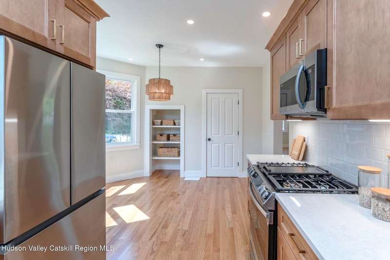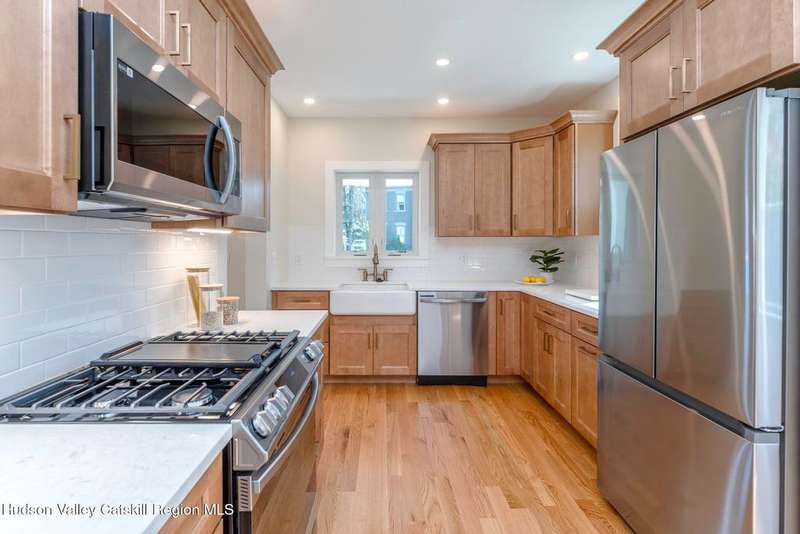 Uniquely positioned to experience the Uptown vibe and the thriving Greenkill Neighborhood! ** Exterior enhancements now complete **Here's your unique opportunity to own a beautifully rebuilt home in one of Kingston's most vibrant, walkable neighborhoods?just steps to local favorites including restaurants, bakeries, distilleries, and the ever-popular Farmers Market. With the Empire State Trail right nearby, outdoor adventure and city charm blend perfectly in this unbeatable location.Sellers have just completed many exterior refinements including larger paved parking pad, Completely fenced for privacy, front picket scalloped fencing, and spacious paver patio for summertime S'mores!This stunning 3-bedroom, 2.5-bath home has been completely reimagined from the ground up, offering all the benefits of new construction with timeless style. Thoughtfully landscaped with classic scalloped picket fencing, lush gardens, and a brand-new patio ideal for dining al fresco or roasting marshmallows under the stars?this is truly a gardener's paradise.Step inside to find an architectural delight, bathed in natural light throughout. The custom-designed kitchen features quartz countertops, a farmhouse sink, stylish cabinetry, recessed lighting, and an inviting eat-in nook. The spacious first level includes a grand entry, formal dining room, large living room, and a convenient half bath?perfect for entertaining.Upstairs, the primary suite boasts vaulted ceilings for an open, airy feel, plus a dressing room and a luxurious en suite bath with artisan-tiled oversized shower. Two additional bedrooms and a full bath complete the second floor. Gorgeous hardwood and ceramic tile flooring run throughout the home.Additional features include a walk-up attic offering expansion or storage potential, and a full basement with laundry area.Don't miss your chance to live where style meets convenience in the heart of Kingston.Either Owner Financing or Rent to Own are both options.