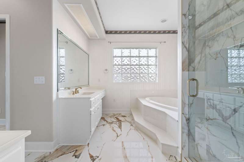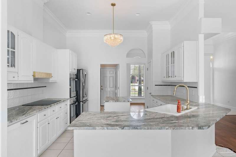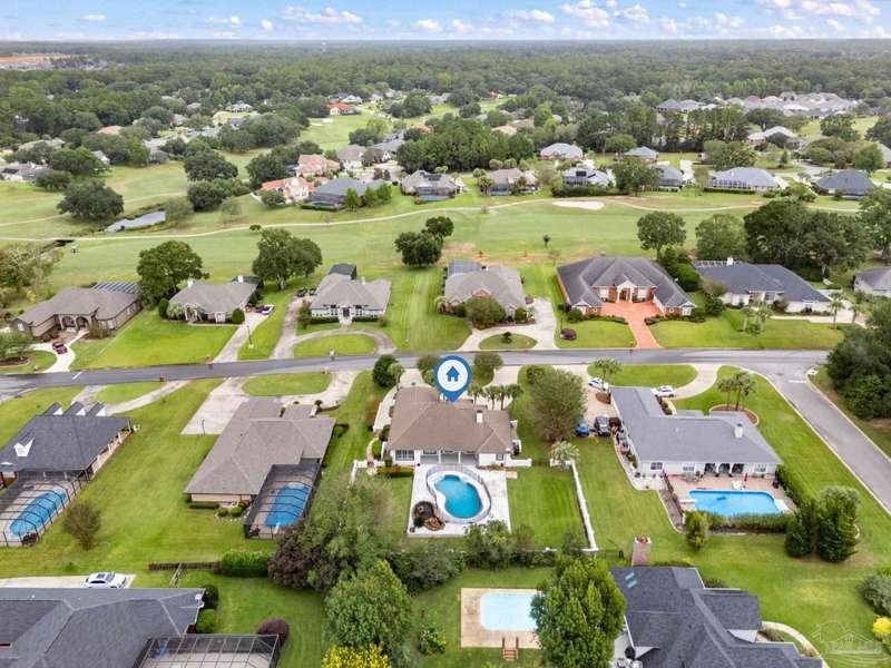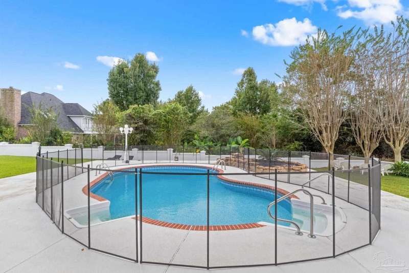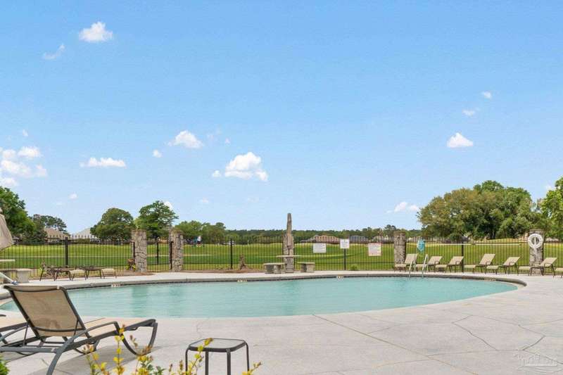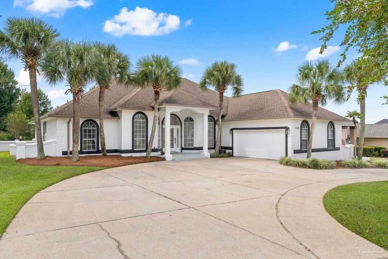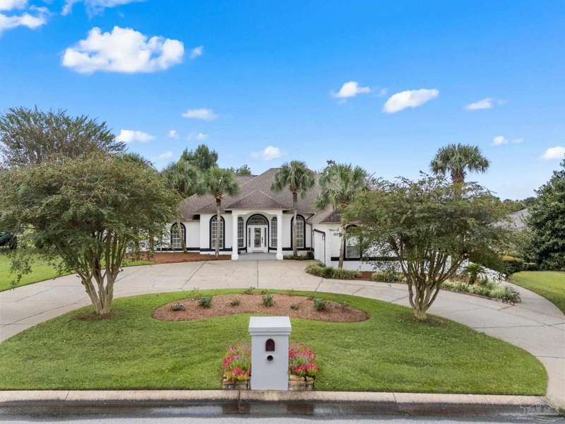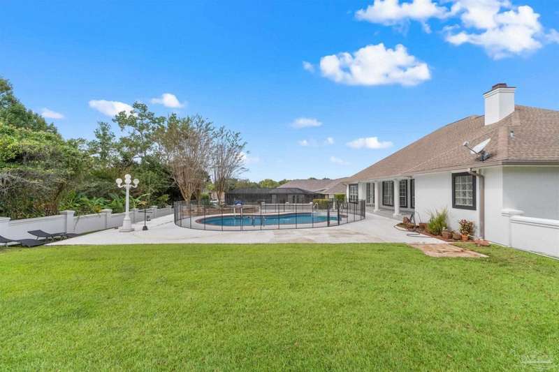 **Open House Saturday Oct 11th 12-2pm**GATED GOLF COURSE COMMUNITY ~ POOL HOME ~ UPDATED KITCHEN ~ HEBLE BLOCK CONSTRUCTION WITH HARD COAT STUCCO ~ Welcome to Stonebrook. This 4BR/3BA home offers a functional split floor plan with a beautiful, backyard retreat. The circle drive, courtyard-entry garage, and covered front porch create a welcoming first impression. Inside, the foyer opens to a formal dining room with engineered hardwoods and crown molding. The family room features custom built-ins, a wood-burning fireplace with updated tile surround, and French doors leading to the pool and lanai. The kitchen has been updated with granite countertops (2025), new cooktop, island with seating, double wall ovens, tile backsplash, and pantry. The primary suite includes bamboo flooring, tray ceiling, and French doors to the lanai. The spacious ensuite bath offers two walk-in closets, dual vanities, jetted tub, separate shower, and marble tile flooring. Three additional bedrooms are well-sized, one with private access to the pool bath. The backyard is perfect for entertaining with a covered patio, recessed lighting, fire pit area, and a stucco privacy wall. Golf cart garage, attic lift system, central vac, and irrigation well are just a few of the extras. Roof scheduled to be replaced in October 2025, HVAC 2018, New Haward Energy Efficient Pool Pump installed 2024, primary bath and bedroom remodel 2025, interior repainted May 2023, exterior repainted May 2024.