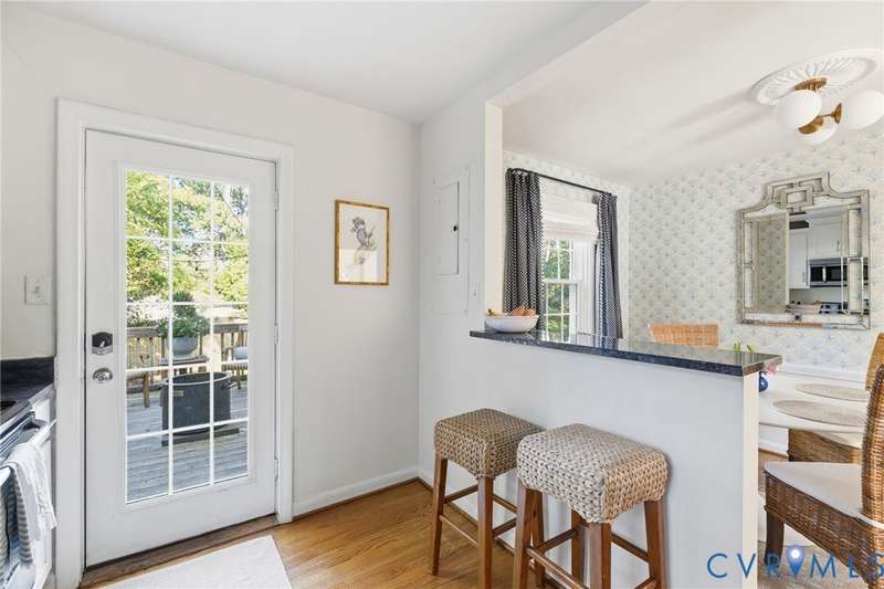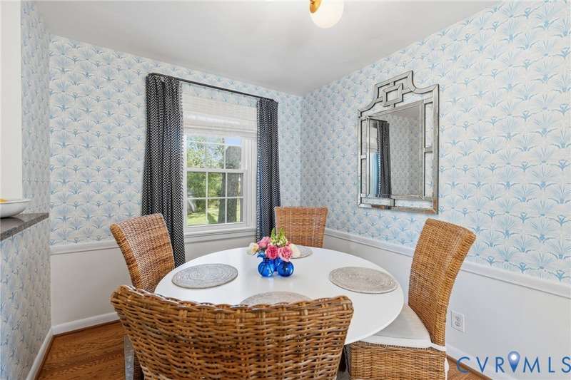 Charming brick Cape Cod situated on an oversized lot in the highly sought-after Libbie/Grove area. This inviting home welcomes you with its warm character and thoughtful updates throughout. The family room opens to a bright sunroom with a wood-burning fireplace-perfect for relaxing or entertaining. The updated kitchen features white cabinetry, granite countertops, and stainless steel appliances, flowing seamlessly into a spacious eat-in area. The main level offers two bedrooms-one currently used as an office-and a beautifully updated full bath. An open stairway leads to the second level, which includes two additional generous bedrooms with excellent closet space, another full bath, and new laminate hardwood flooring. Throughout the home, charming storage areas and cozy nooks add to its appeal. Enjoy peaceful evenings on the back deck overlooking the large, established, and fully fenced backyard. Notable updates include hardwood floors on the main level, vapor barrier in crawlspace (2016), backyard fence (2018), shed (2017), front storm door (2019), and new back door (2020). Windows were replaced in 2015, and the roof, HVAC, and hot water heater are all approximately nine years old.