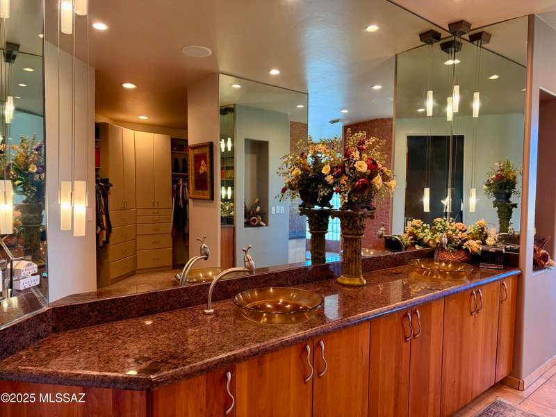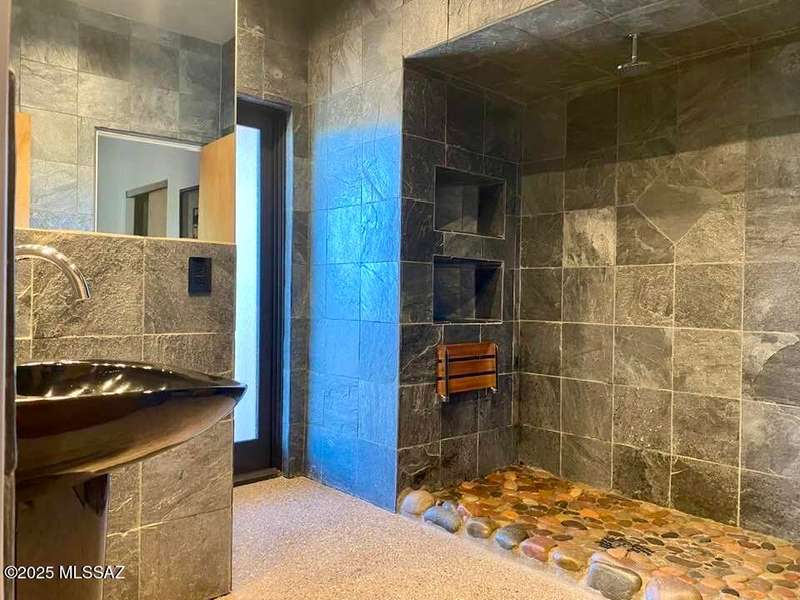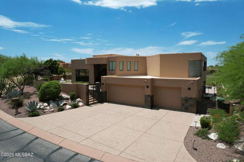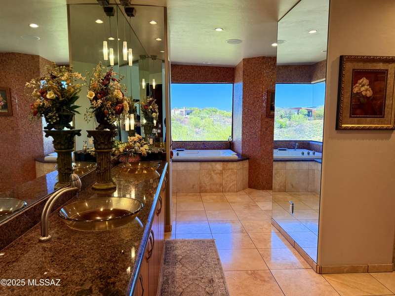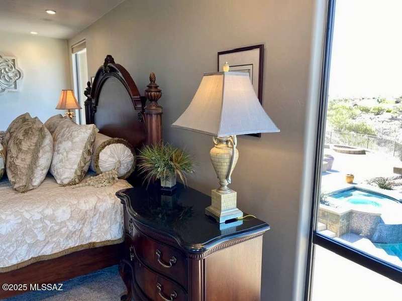 Private Gated Custom Residence on 1.19 Acres with Mountain views. Open floorplan, oversize 3-car garage, floor-to-ceiling windows, waterfall entry, & travertine floors. The backyard features a pool & spa, a built-in BBQ, an outdoor shower, a firepit, grass, and covered patios. Recent upgrades include new paint, slate, light fixtures inside and out, smart home lighting and sprinkler system, new flooring in the master and garage, new water softener & gas water heater. 6th bedroom is small, close to the master and would be a great nursery.