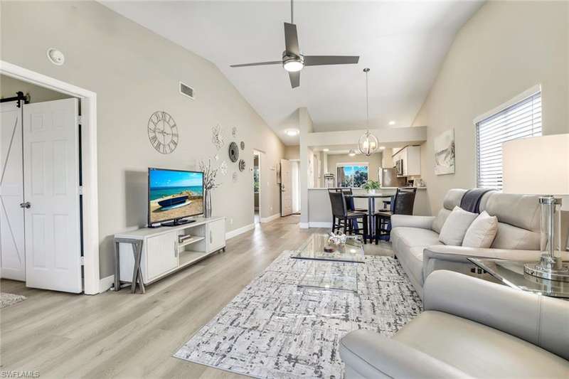 Discover a rare gem in the prestigious, gated community of Countryside. Perched on the top floor, this beautifully updated end-unit condo offers comfort, style, and exceptional value. Step inside to a fully turn-key furnished 2-bedroom, 2-bath residence featuring refreshed bathrooms, vinyl plank flooring, modern fans and fixtures, and sleek stainless steel appliances. Convenience is key, with dedicated covered parking included. Countryside offers a wealth of amenities to enrich your lifestyle, including onsite dining, an 18-hole championship golf course, a state-of-the-art fitness center, tennis and pickleball courts, a driving range, pool, spa, and bocce courts. A major clubhouse renovation, slated for completion in 2025, is set to enhance the community even further. As a social member, enjoy golf privileges. With Naples upscale shopping, dining, and Gulf beaches just minutes away, this is your chance to enjoy a slice of paradise in one of Southwest Florida s most desirable communiti