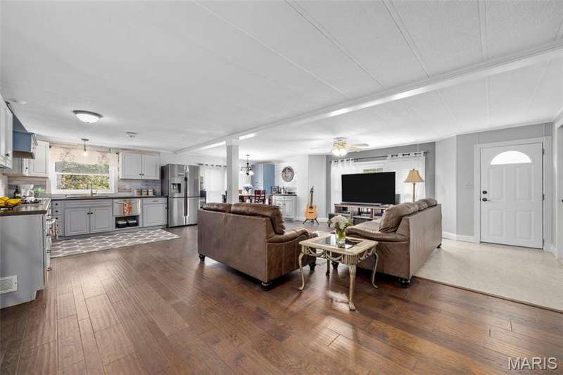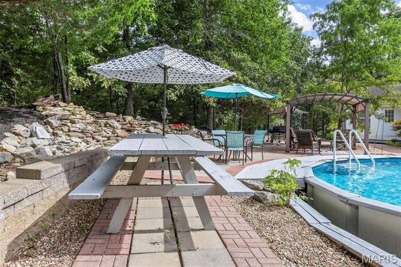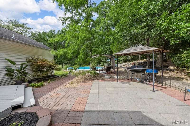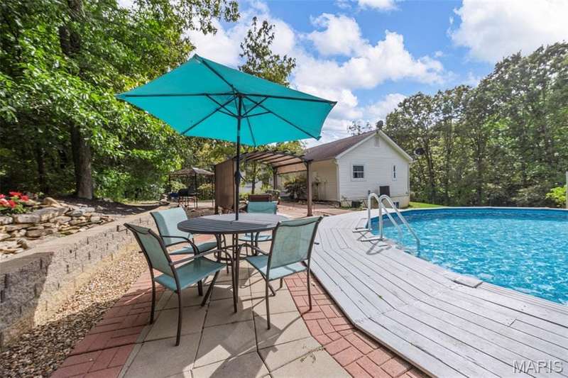 Tucked away at the end of a winding gravel road, this beautifully renovated and meticulously maintained modular home feels like a hidden sanctuary. Surrounded by trees and nature, the property offers the perfect blend of privacy, comfort, and functionality. Step inside to an open floor plan where the living room, kitchen, and dining area flow seamlessly together. The kitchen shines with stainless appliances, gas cooktop, and plenty of space for gathering. The main level features three spacious bedrooms, including a primary suite with double sinks, deep soaking tub, and an oversized walk-in closet. A bright sunroom leads directly to the pool and patio, creating effortless indoor-outdoor living. The walk-out lower level boasts 9 ceilings and expands the living space with a recreation room, full bath, office/exercise area, & additional sleeping space. Outdoors, enjoy resort-style relaxation with a pool, cabana, and paver patio. A 30x50 detached building with concrete floor and electric is perfect for vehicles, hobbies, or extra storage. Front of property has perfect spot for 1.5-2 acre lake if desired. Move-in ready and offering unmatched privacy, this property is the ultimate retreatwhether for everyday living or weekend escapes. (Additional Notes: 6/12 pitch on roof, scissor trusses, 2x6 LL exterior walls, new carpet, new neutral paint, custom cabinets, 4' stairs to basement, 9' basement pour, chlorine pool is 27' round & 18,000 gallons, no HOA, no subdivision, low taxes)