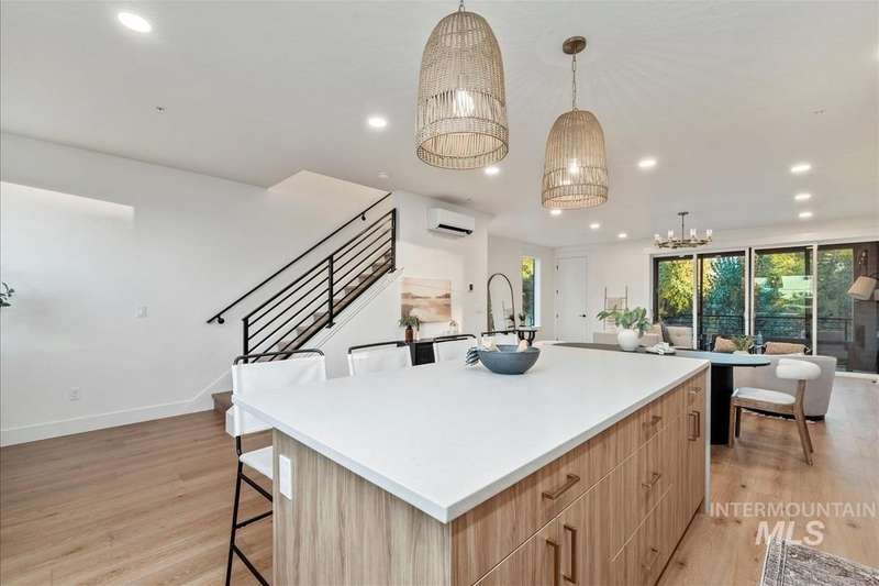 Welcome to our newest building at Whitewater Townhomes! Featuring views of Esther Simplot Park and Quinn's Pond + home sizes over 2000 square feet, Whitewater Townhomes is Boise's newest premier lifestyle community. Placed perfectly between the North End, Downtown Boise and Garden City, there's no better place to wake up! Walk or e-bike to Push and Pour, Rosa's, Telaya Wine Co, The Yardarm and The Sandbar Patio & Grill or hike the foothills with the Ridge to Rivers trail system. This particular unit has been upgraded to include luxury Thermador appliances, waterfall quartz countertops with a leathered finish and stained beams in the primary suite. The first floor includes a full size garage and bedroom with ensuite bathroom, perfect for AIRBNB. The main living space offers a stunning full size kitchen, cozy outdoor patio, and powder bath. Upstairs you'll find two more bedroom suites with huge closets. All exterior maintenance is taken care of so that you can experience the Boise lifestyle in luxury like never before! Ask us about financing incentives! Photos are from a similar unit.