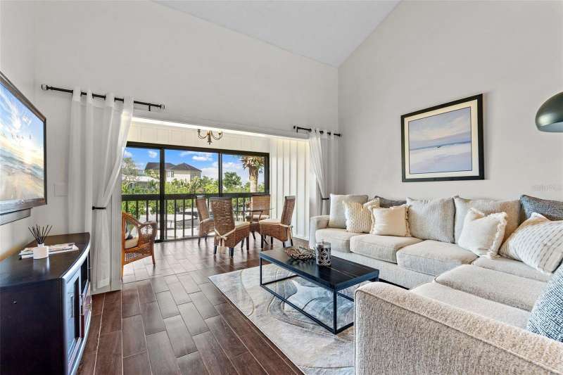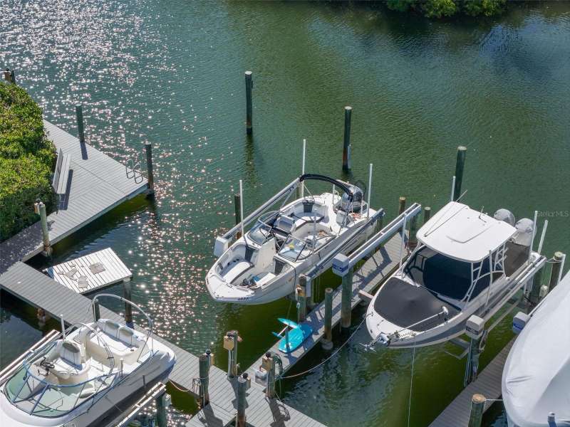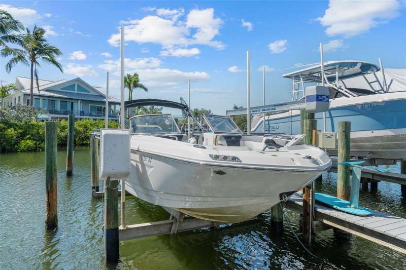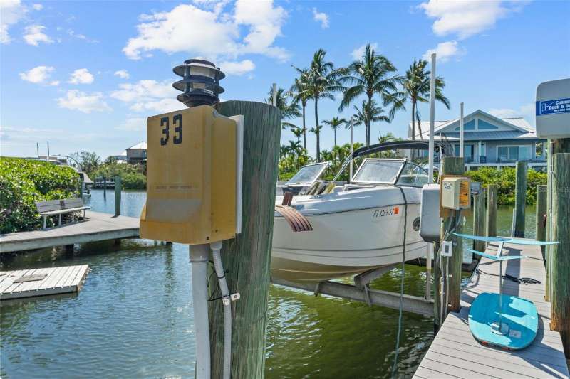 Under contract-accepting backup offers. RARELY AVAILABLE THREE BEDROOM THREE BATH WITH 10,000 POUND BOAT LIFT AND SLIP THAT ACCOMMODATES UP TO A 45’ BOAT! Have you heard? Big Pass Is Open! You can now access the open waters of the Gulf from Big Pass, located between south Siesta Key and Casey Key! Enjoy the intracoastal waterway North and South in protected waters. This condo has beautifully updated kitchen and baths, quartz countertops, newer appliances, beautiful flooring throughout and soaring 20’ ceilings. Relax in the glassed and screened lanai overlooking the deep-water boat basin. The second story offers additional living space, a private bedroom and bath and a spacious 12’ x 13’ storage room. Harbour Towne has a clubhouse, pool, spa, four pickleball courts and a tennis court. Enjoy the world-famous Siesta Key Beach right across the street. If you love beach life, boating, pickleball and tennis, this is the condo for you! You may especially like the Siesta Key Village vibe with an easy walk, cycle or free trolley ride to enjoy great restaurants, live music, and shopping. It’s all here for the resort get-away feeling!